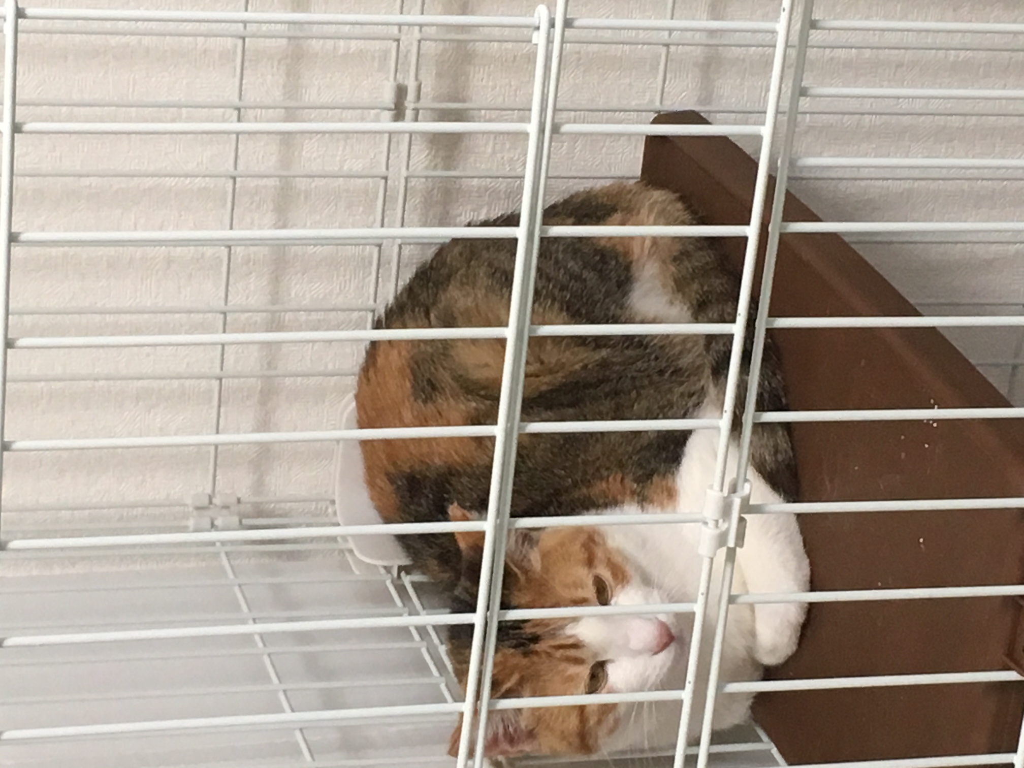 飼育放棄に近い状況で2階の出窓にへばりついて鳴き叫んでいました。