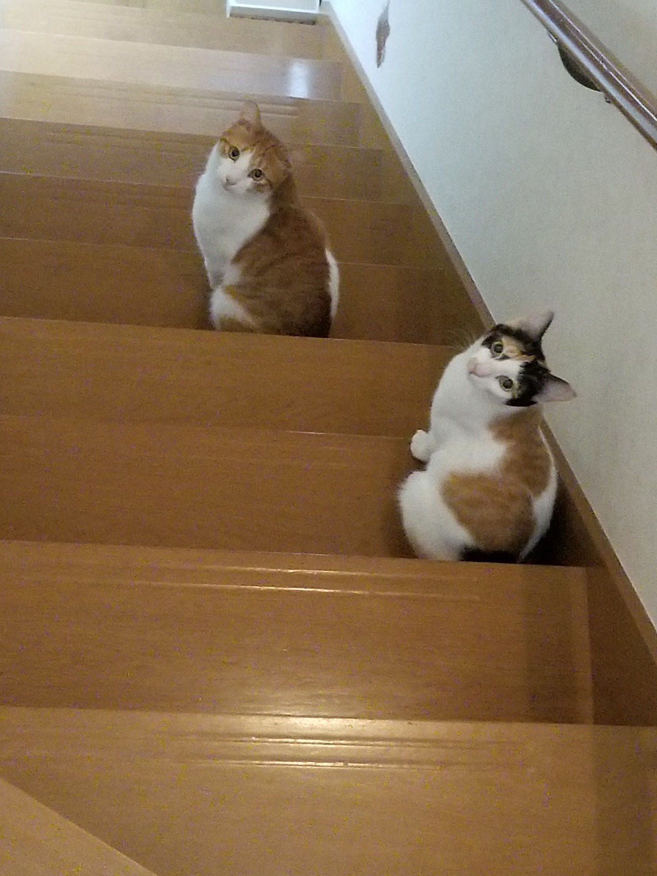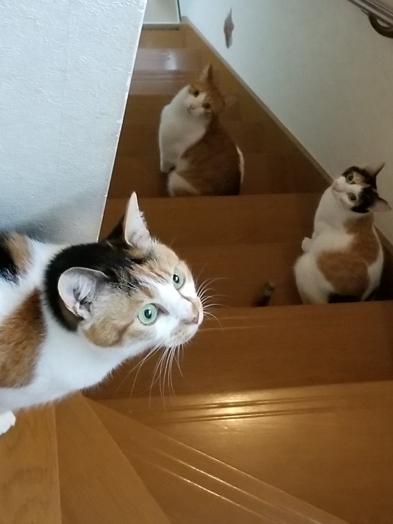 朝2階の寝室のドアを開けると6匹で待ち構えています。
