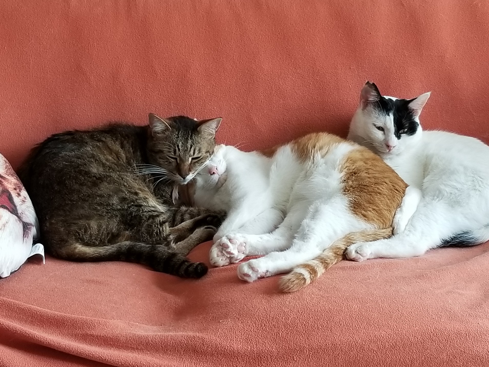 この4匹が私の就寝中ベッドで横に来るので暑い暑い。