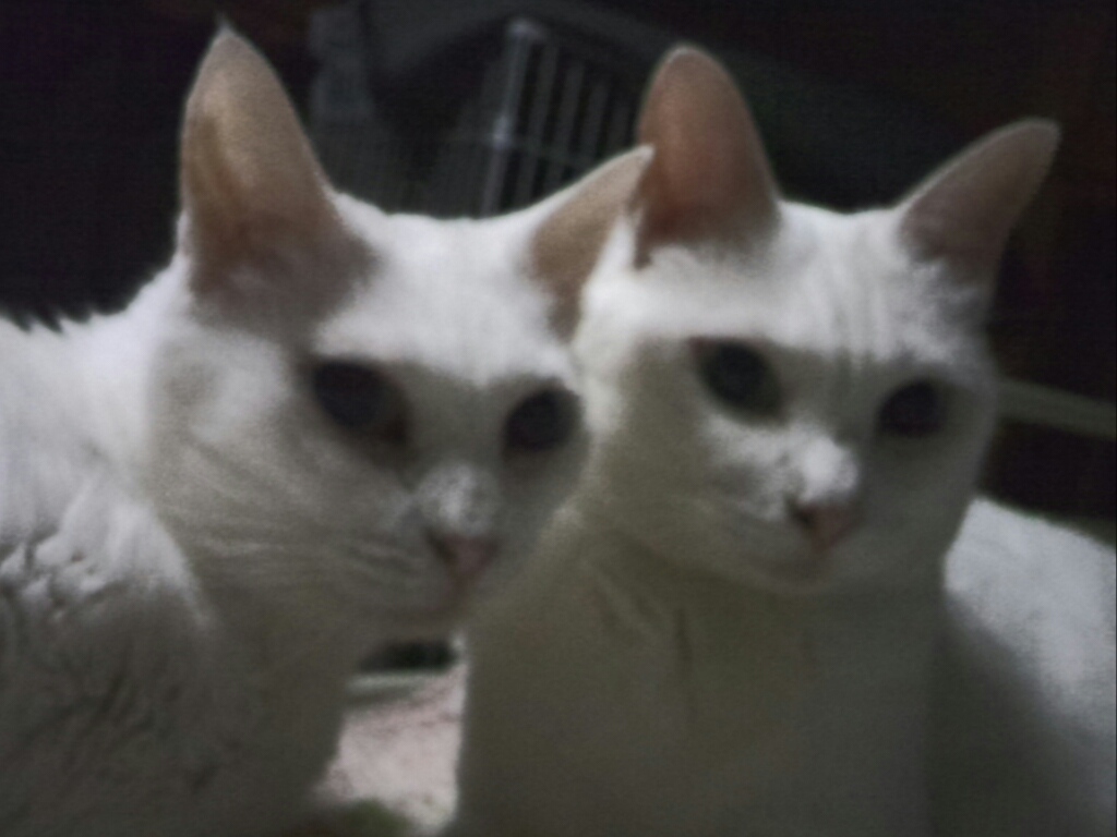 寝室の白組さんのにゃんこは三匹。皆真っ白で尾が長いのです。