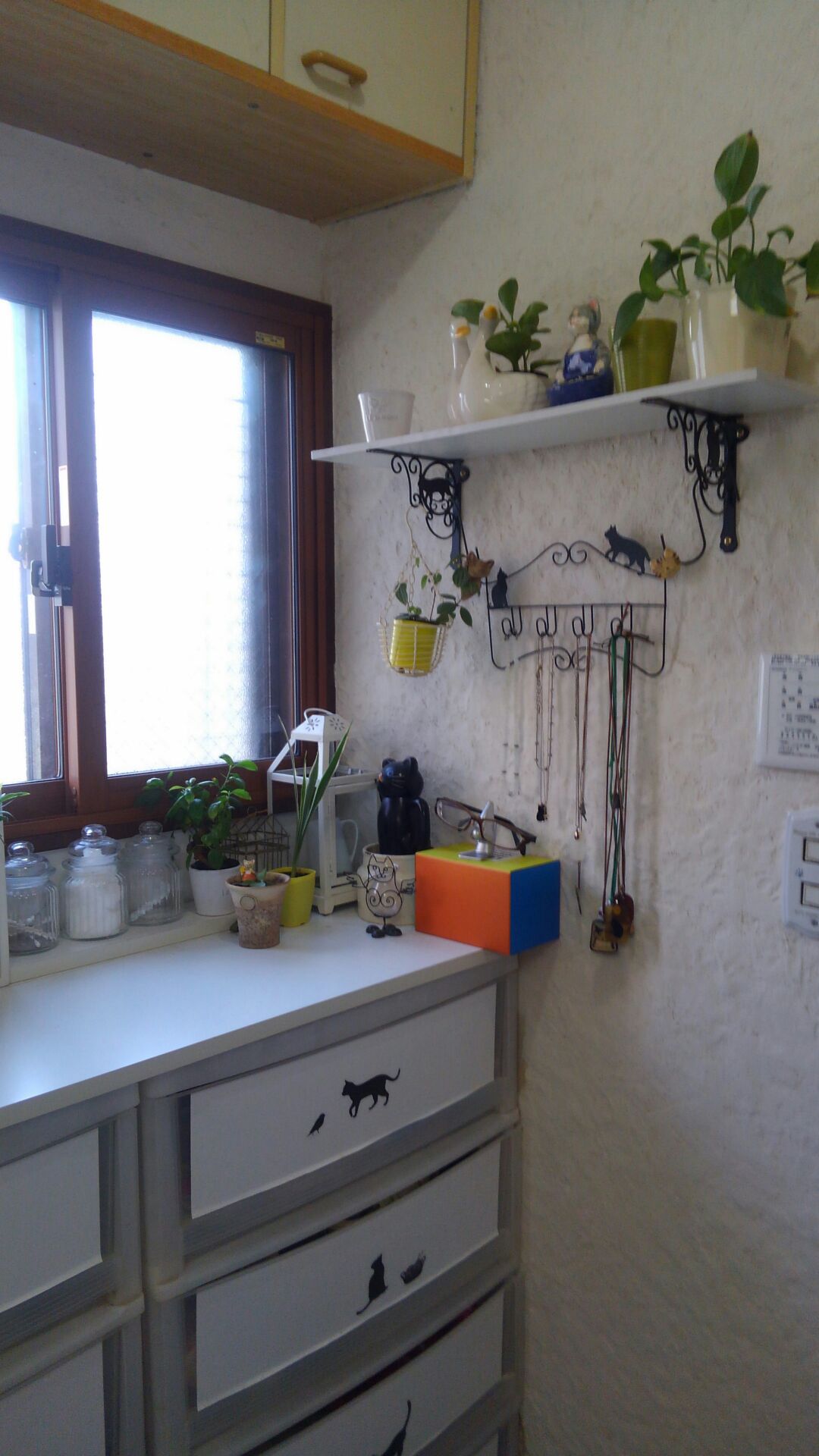猫たちが入れないこの場所だけは観葉植物が飾れます。