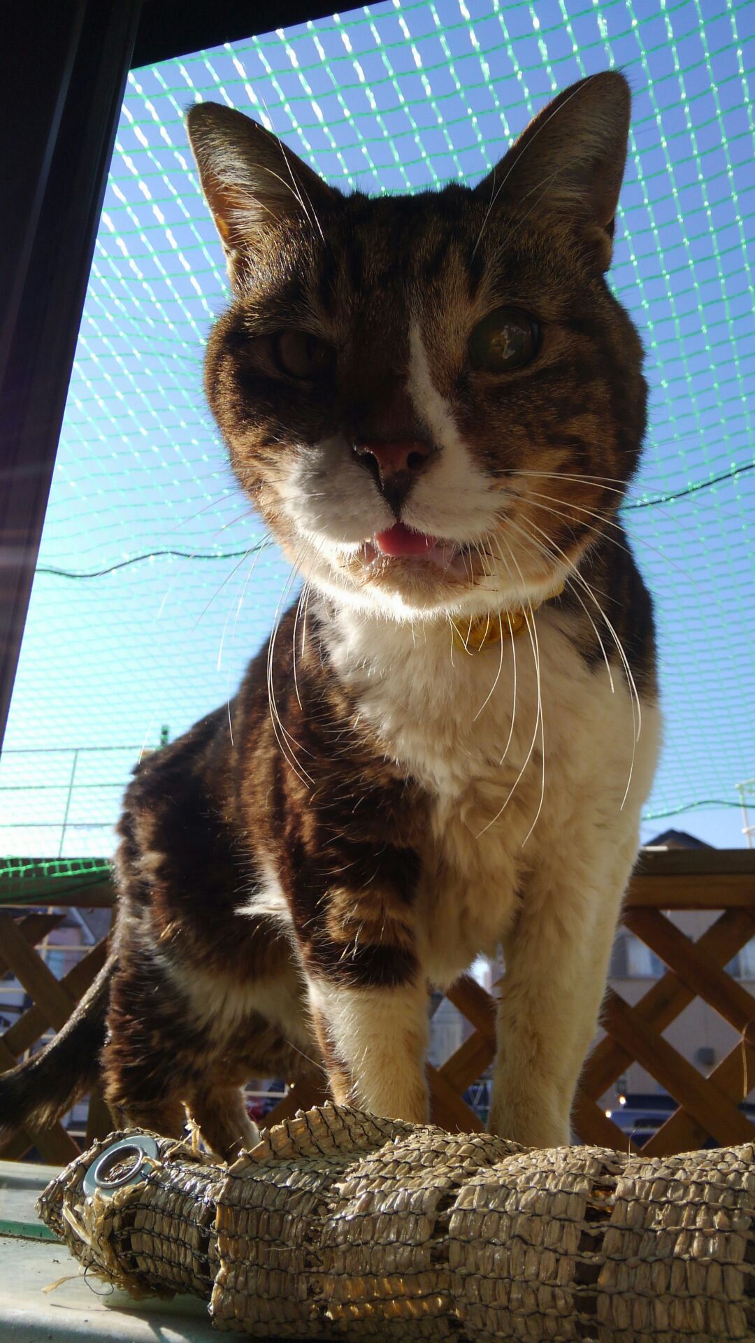 温室の上で「なんでやねん?」って小太郎。