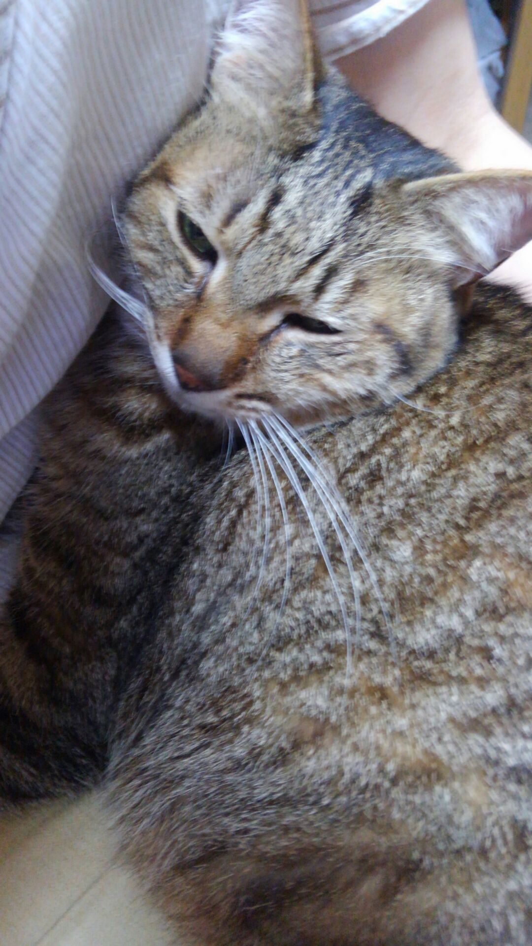 抱っこされて目を細めていました。