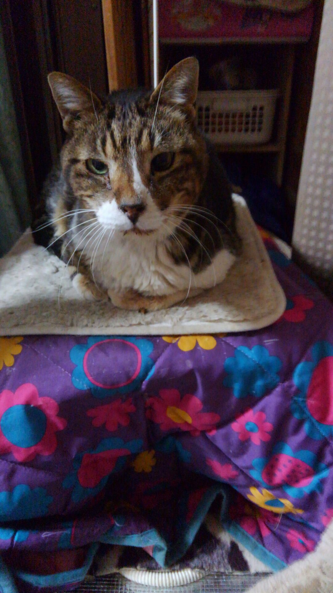 多頭飼育の環境の中で目を合わせず争いを避ける術を身に着けていたようです。(でも体は引っかき傷だらけでした)思慮深い賢い子ですぐに里親さんが見つかり我が家から巣立っていきました。