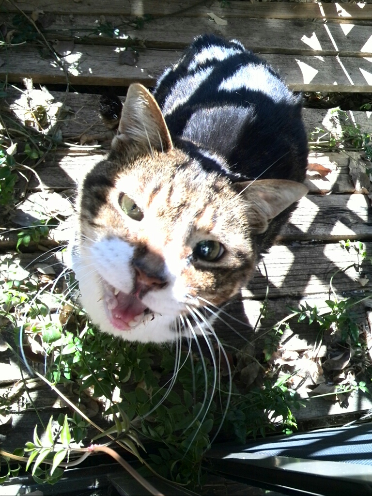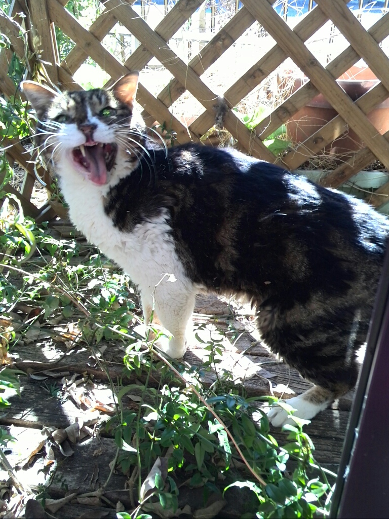 大きな体での雄叫びは猫でないような声で、ハラハラしながら見守っています。