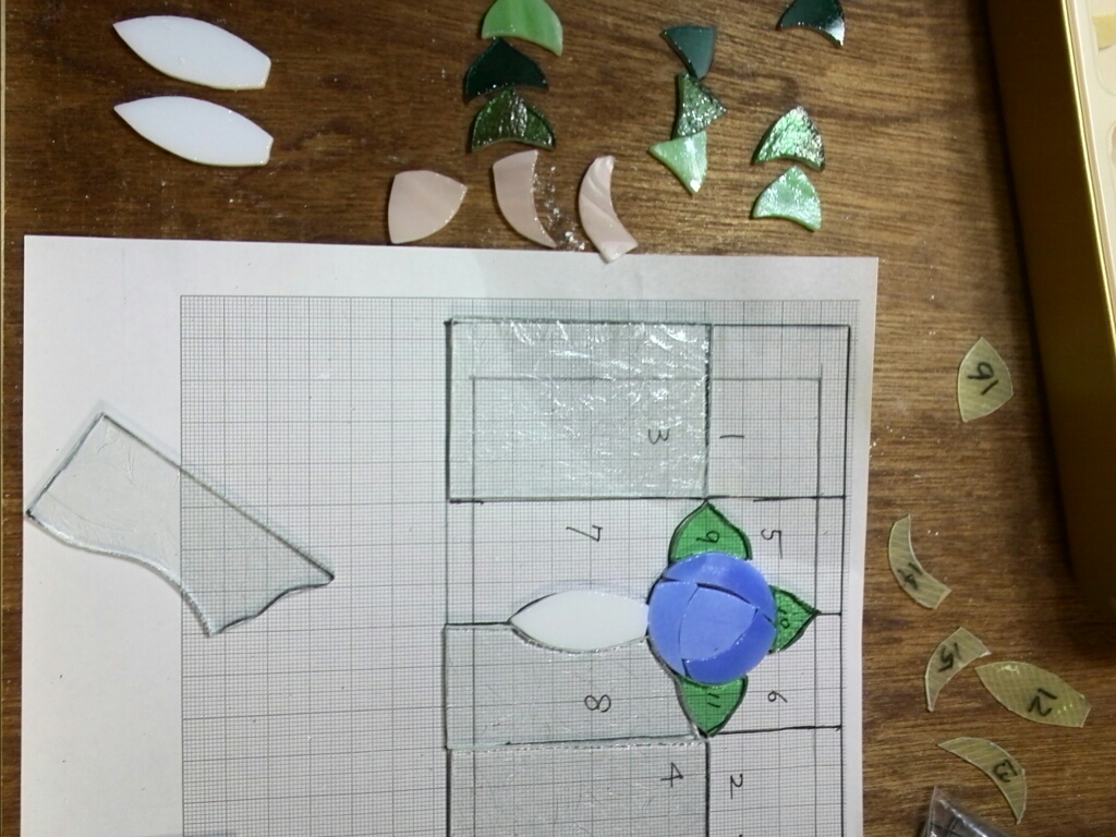 昨日夜にステンドグラス工房彩の八木先生にお手伝いいただきながらガラスを削ってきました。