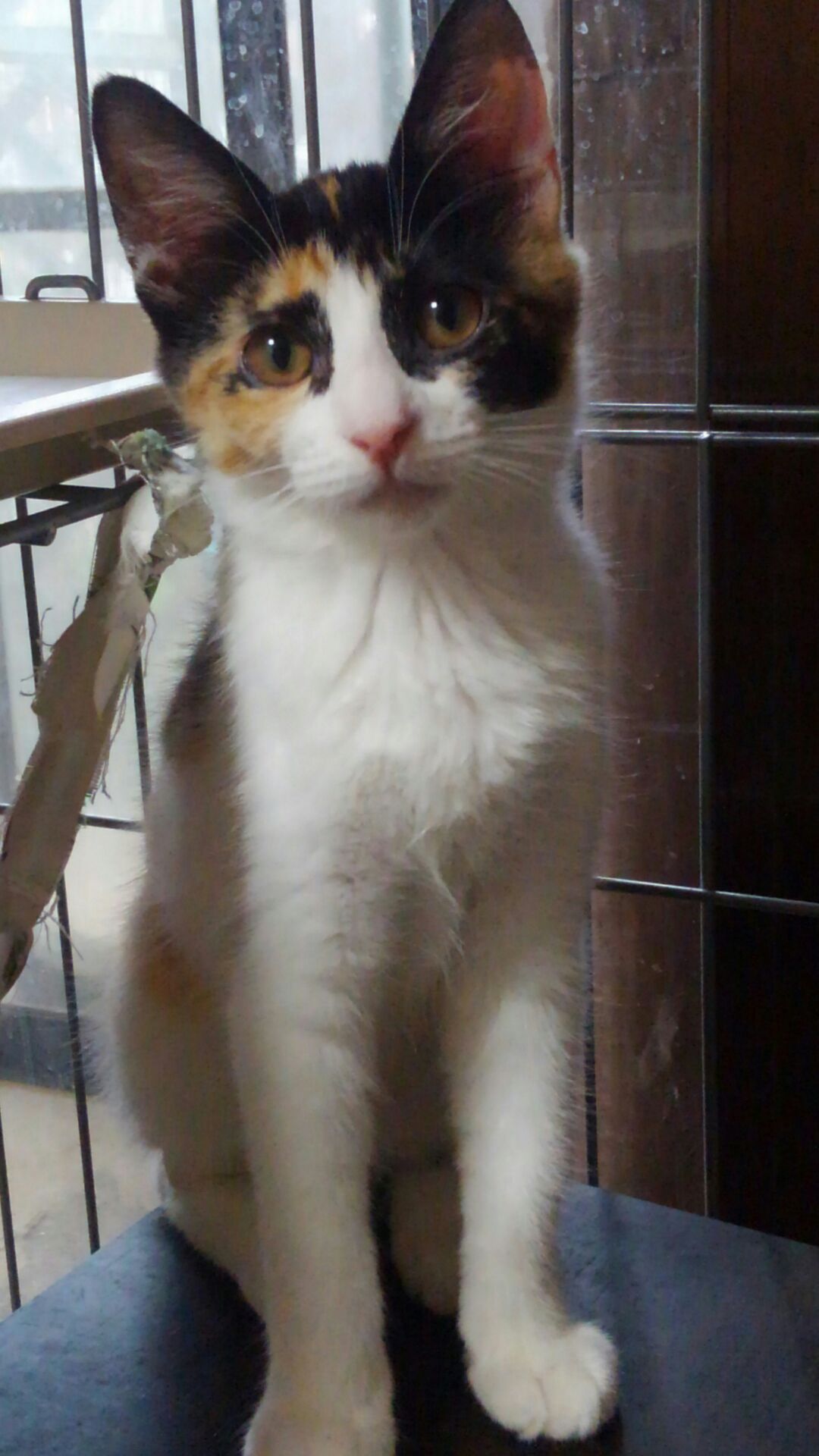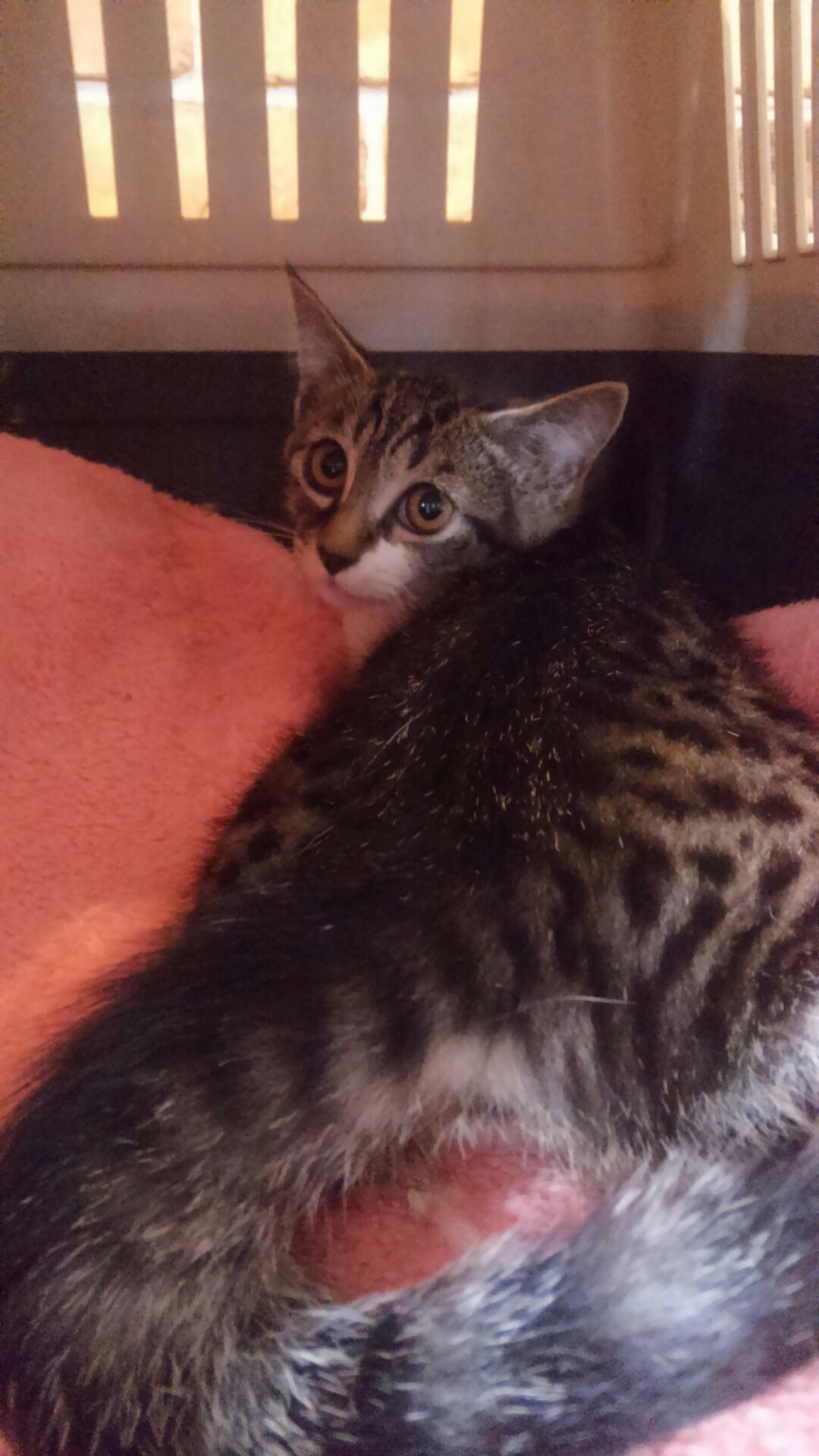 1カ月ぶりのお外におっかなびっくり。おとなしくキャリーの中でいい子にしていました。