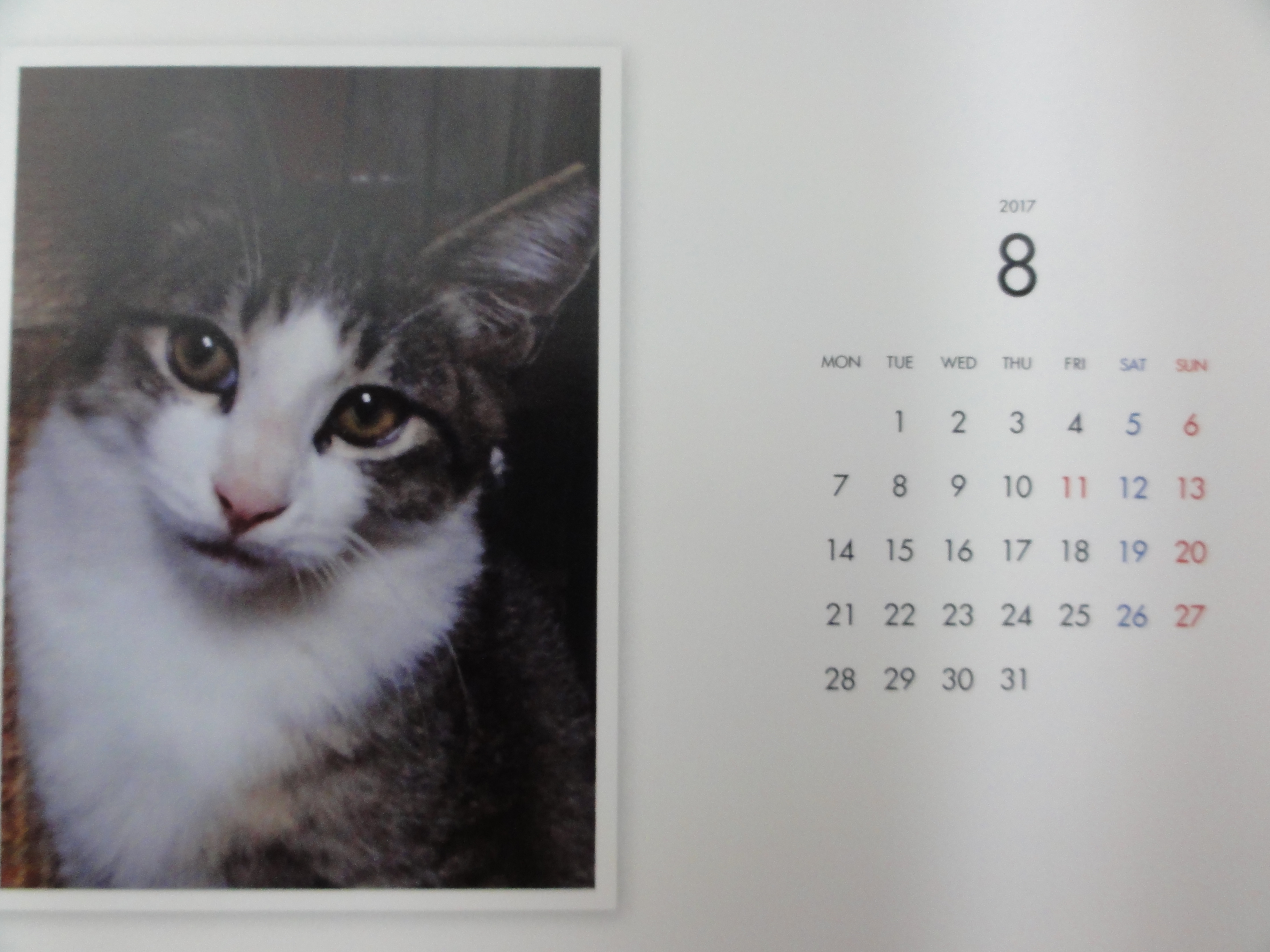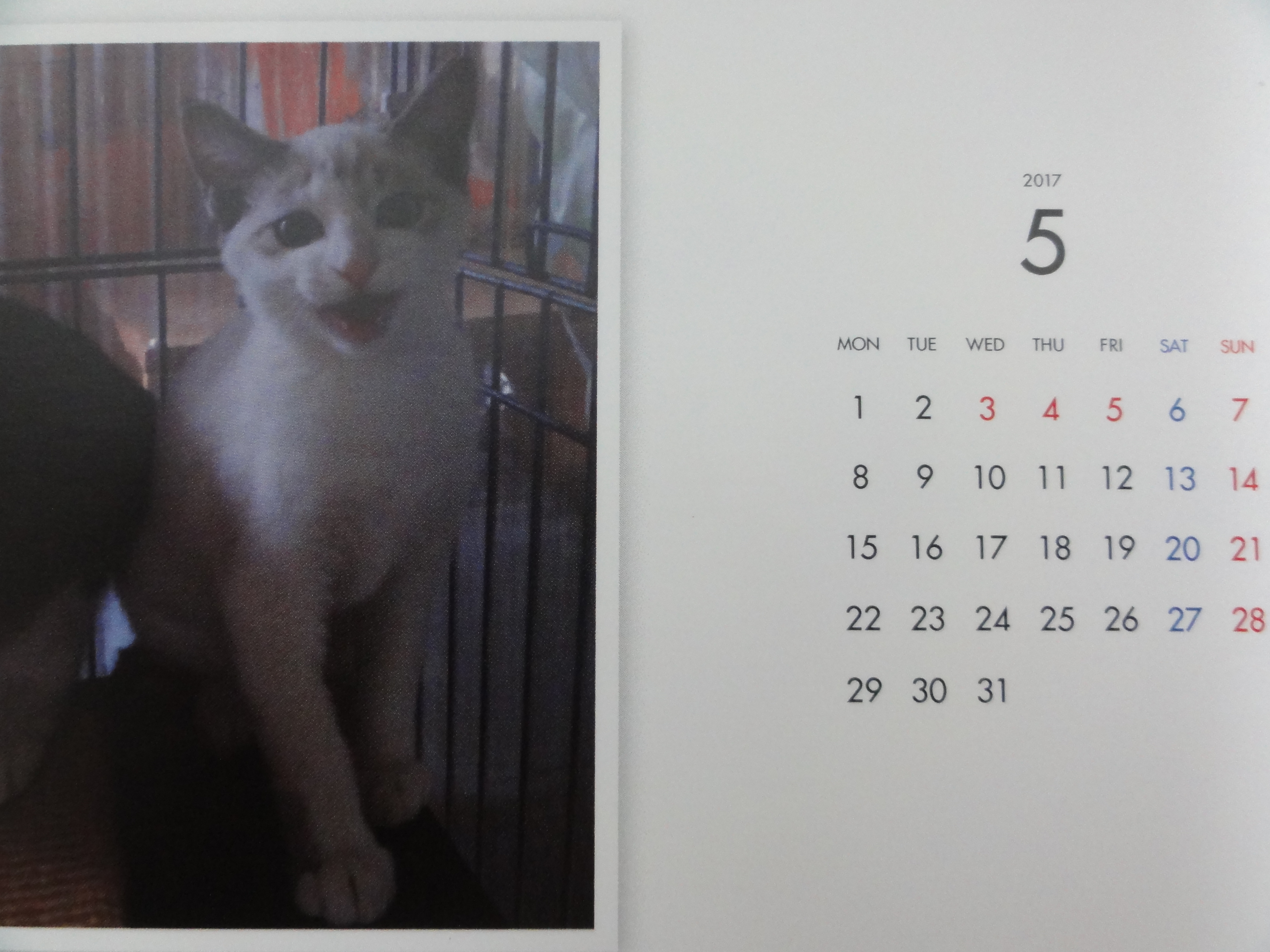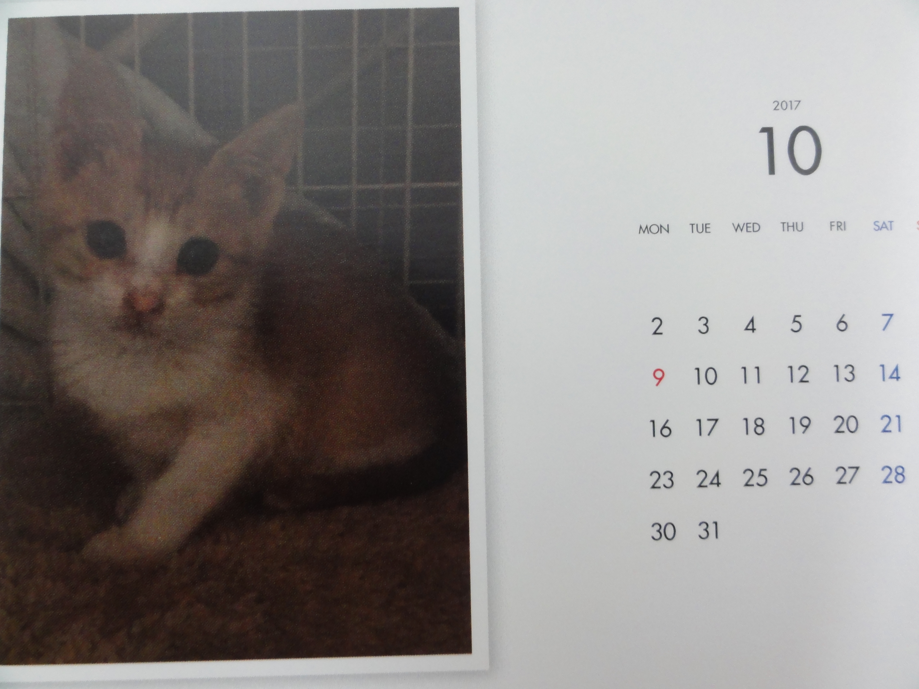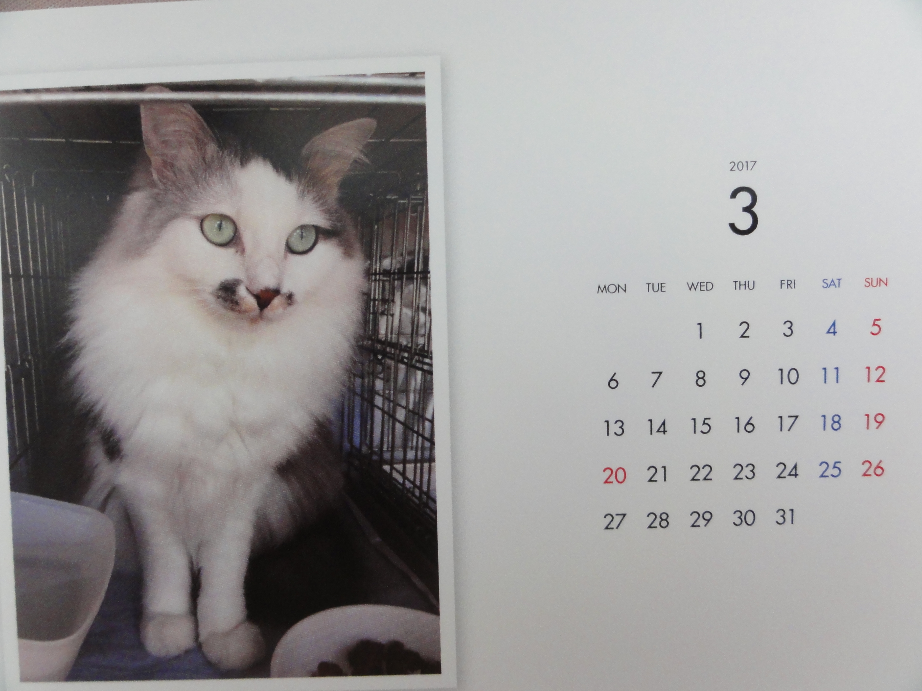 昨年からはじめた年末恒例のカレンダーの販売ですが、里子に行った子、里親様を募集中の子を毎月一枚掲載した卓上のコンパクトなカレンダーです。