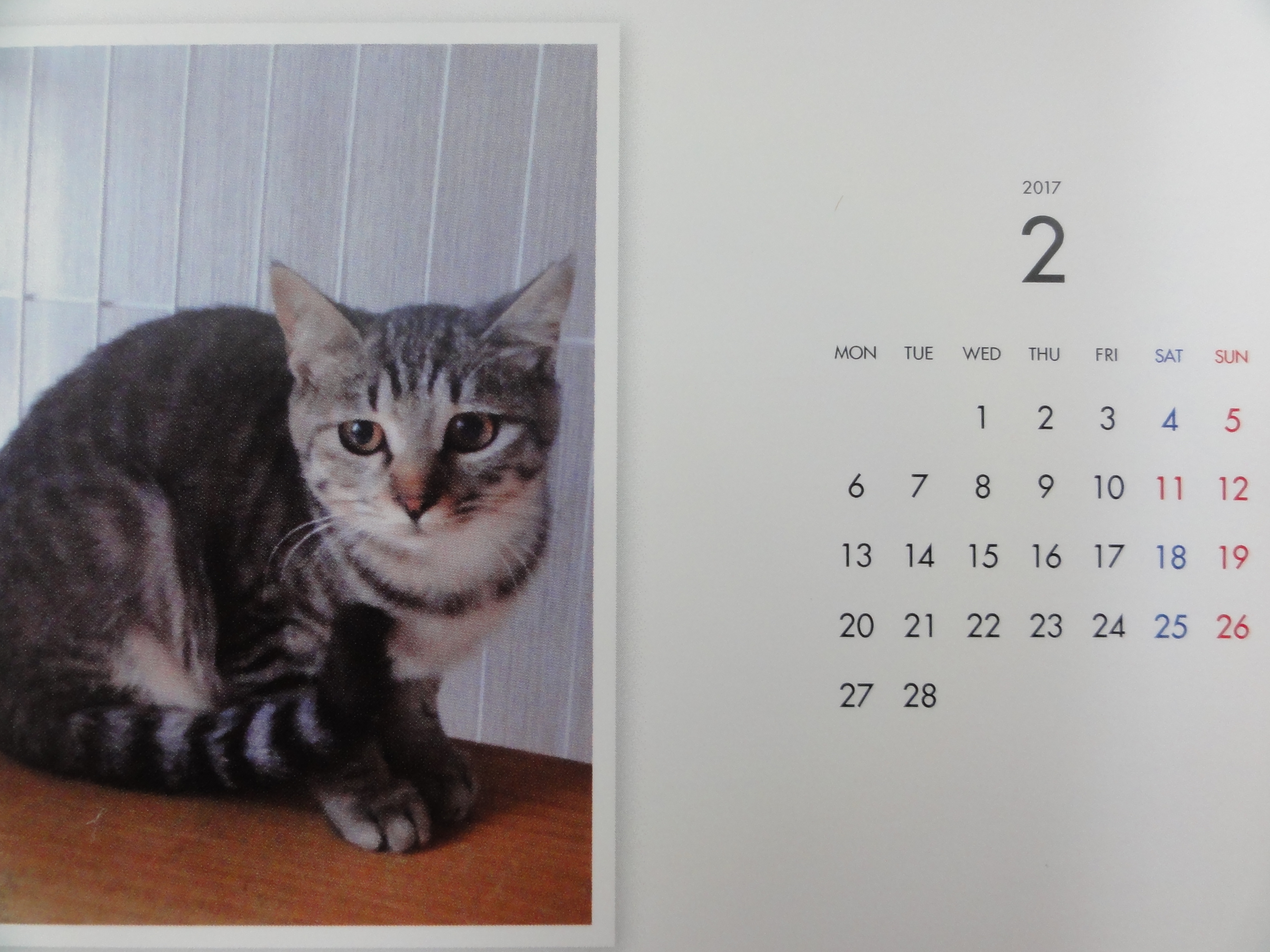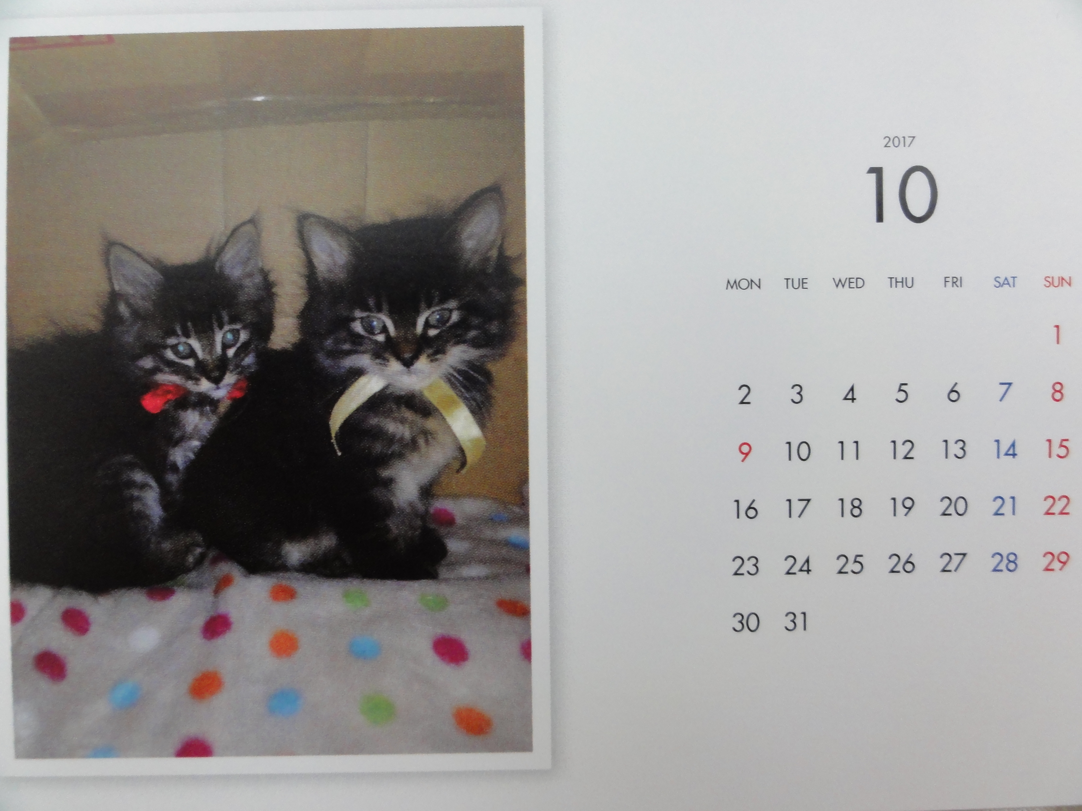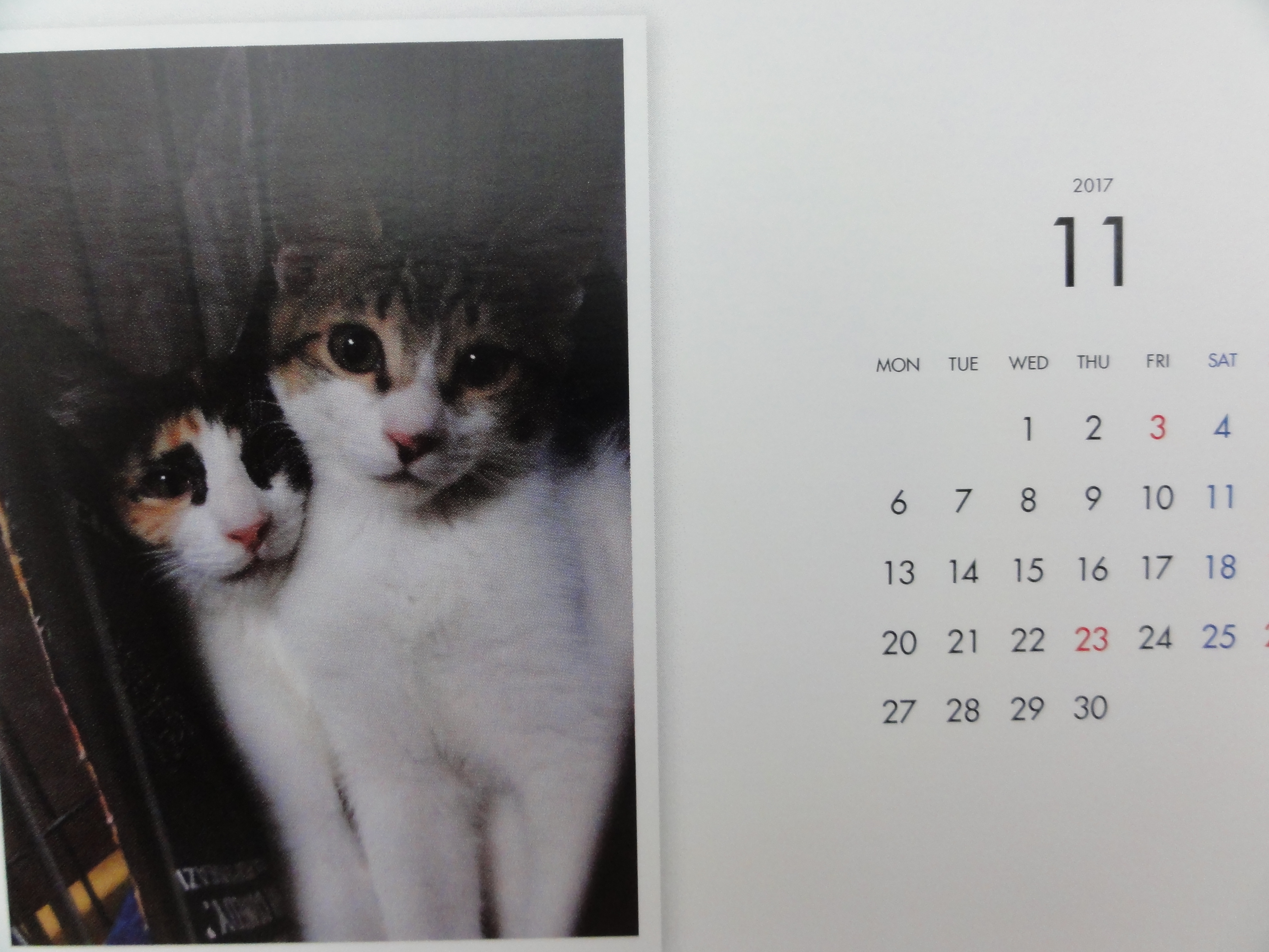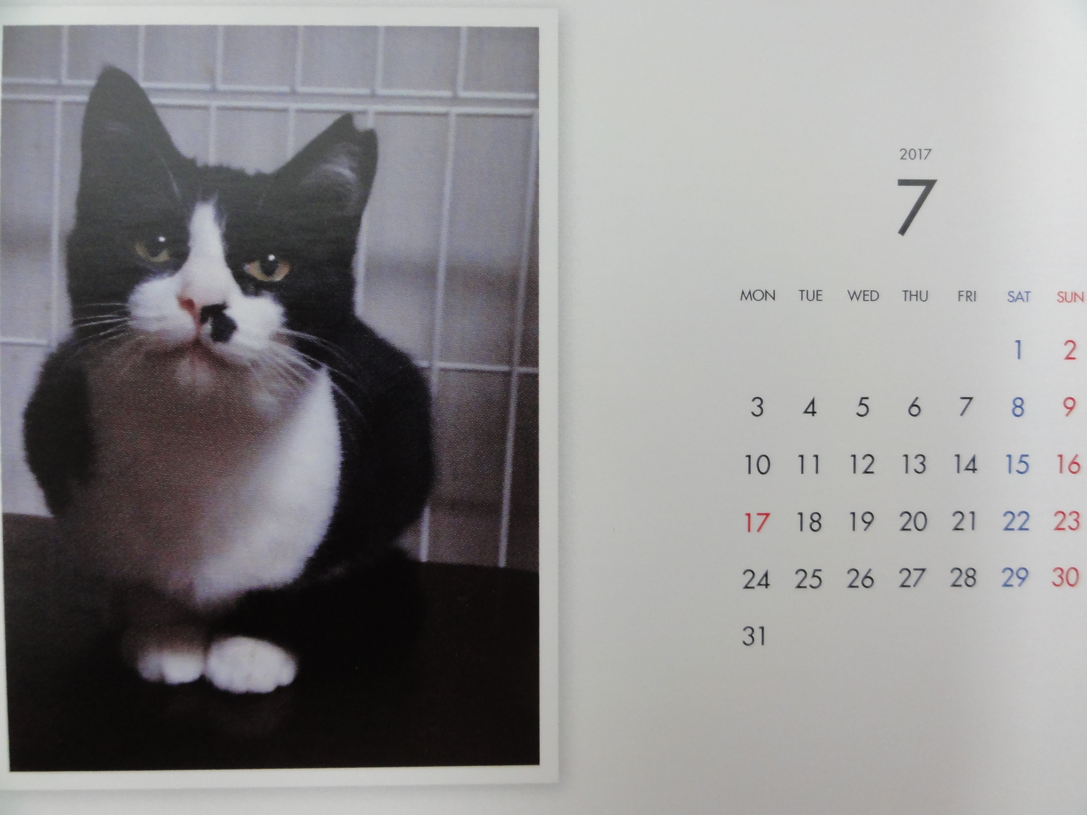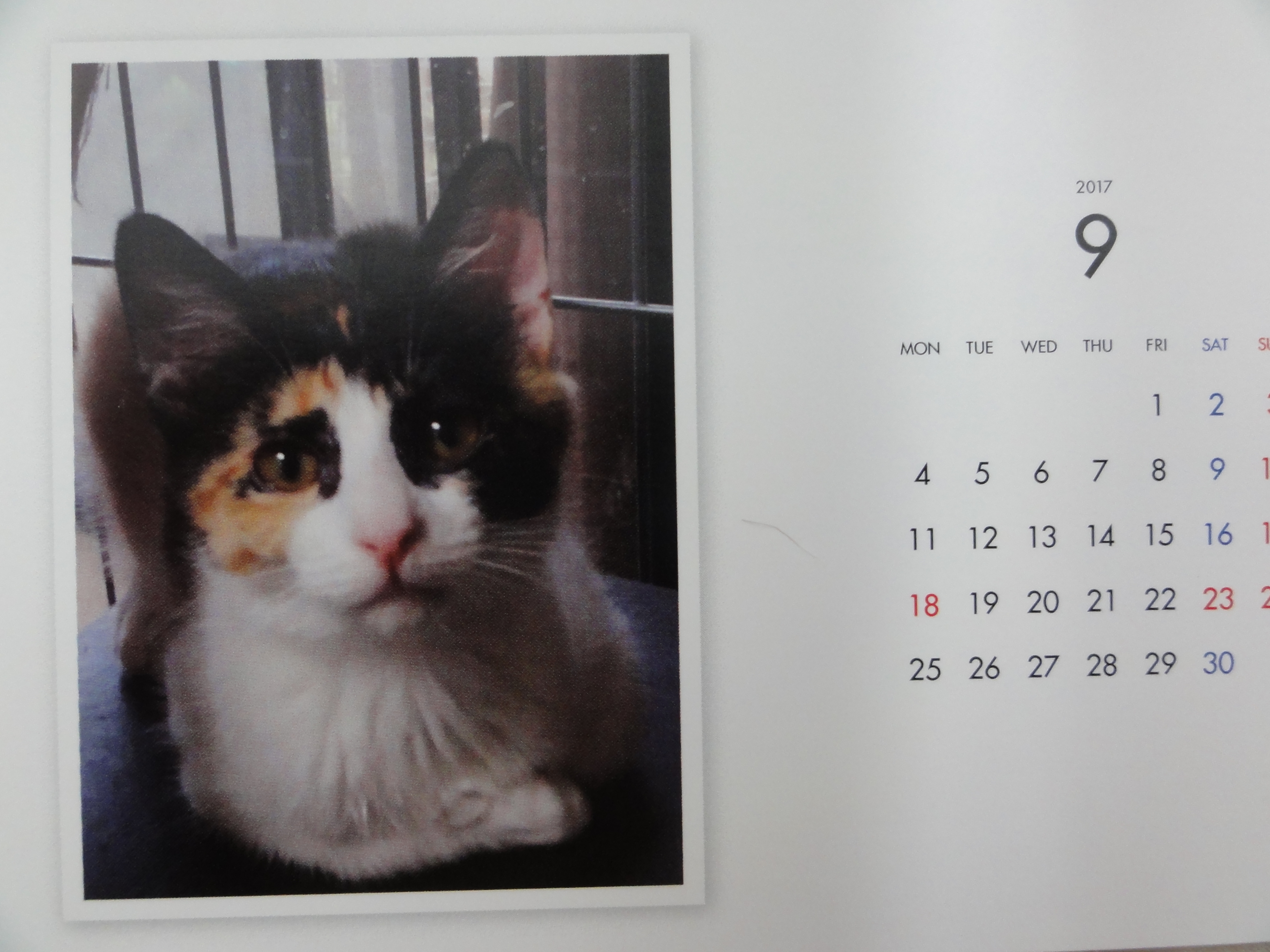 昨年からはじめた年末恒例のカレンダーの販売ですが、里子に行った子、里親様を募集中の子を毎月一枚掲載した卓上のコンパクトなカレンダーです。