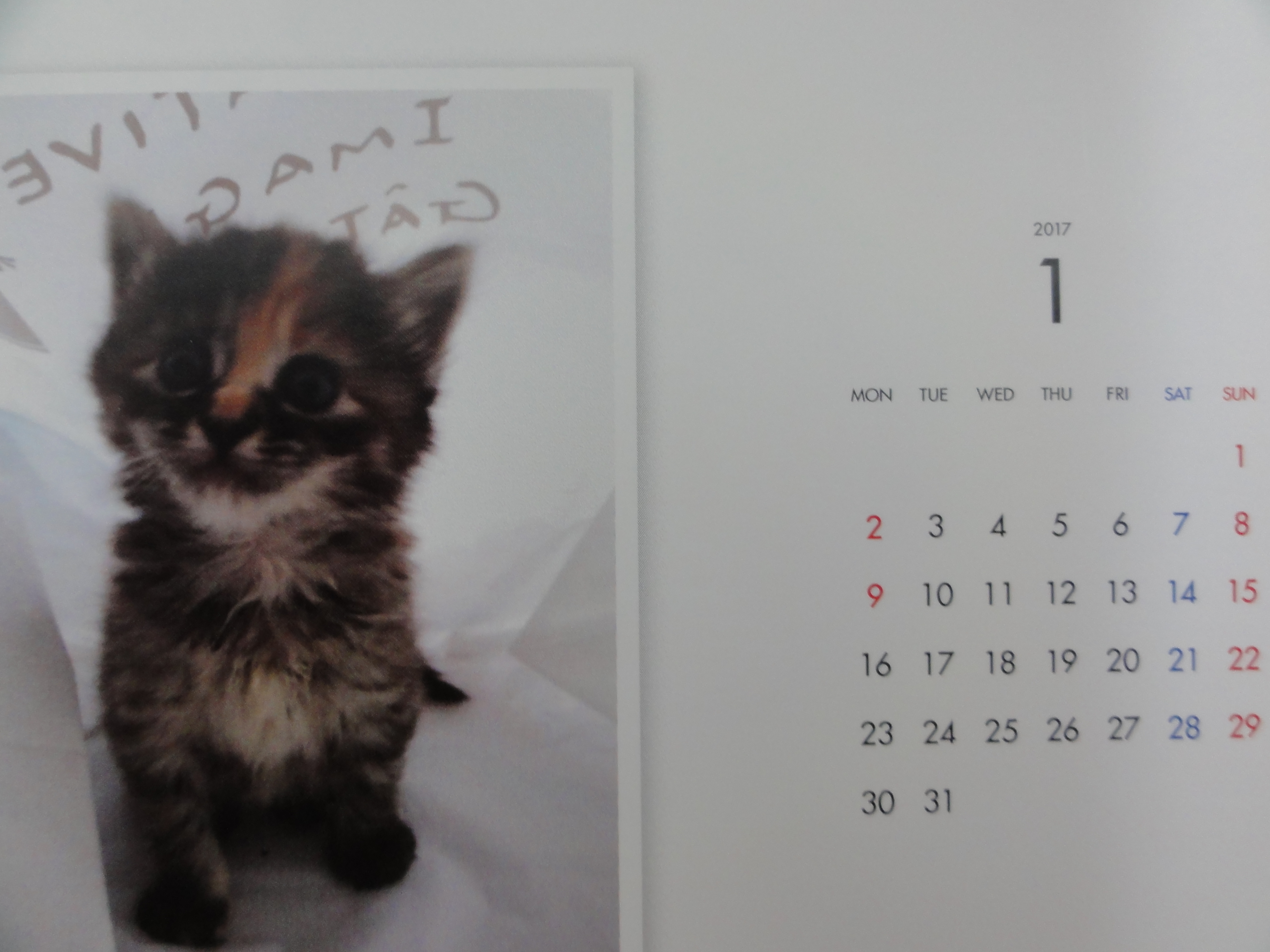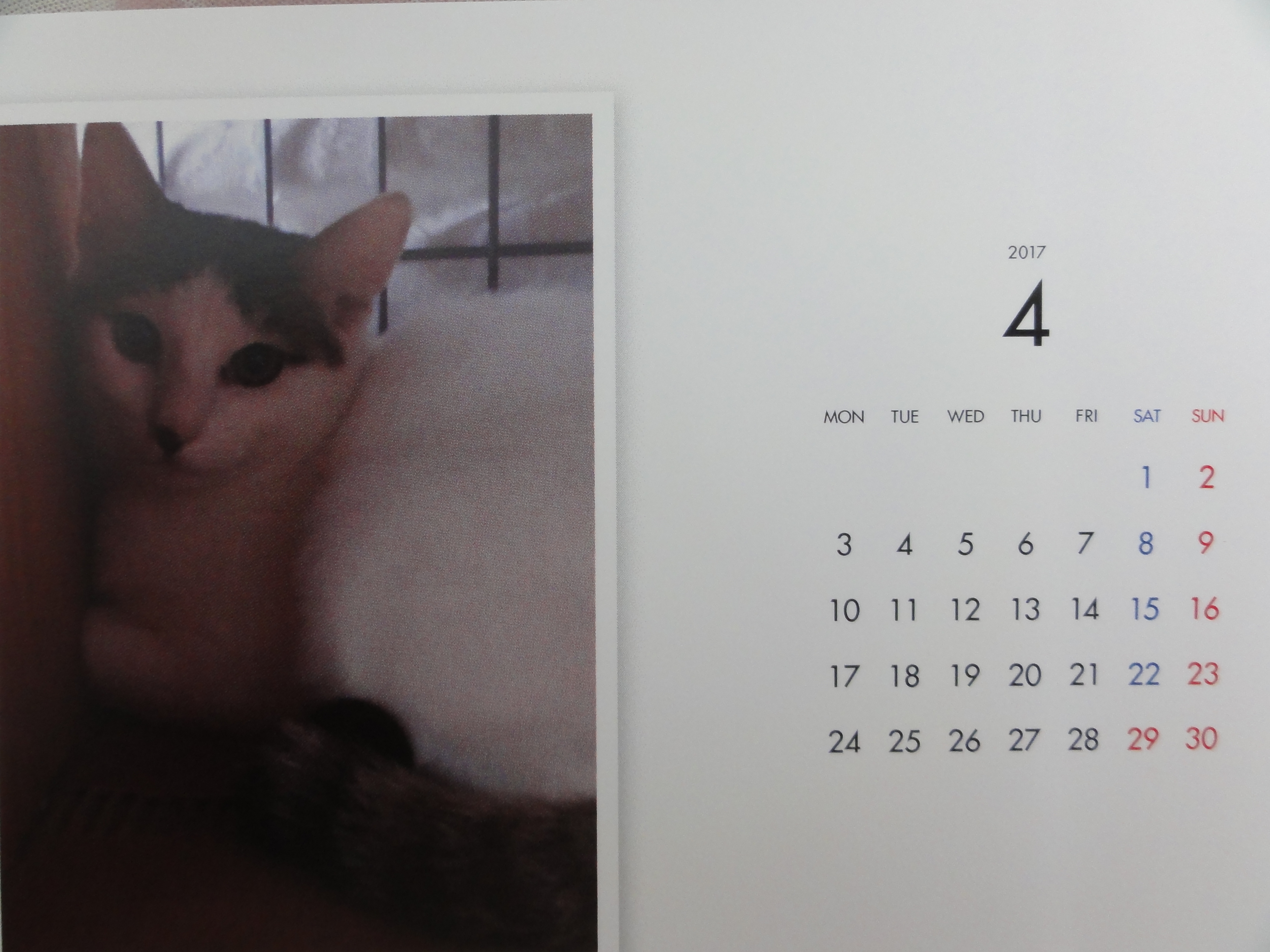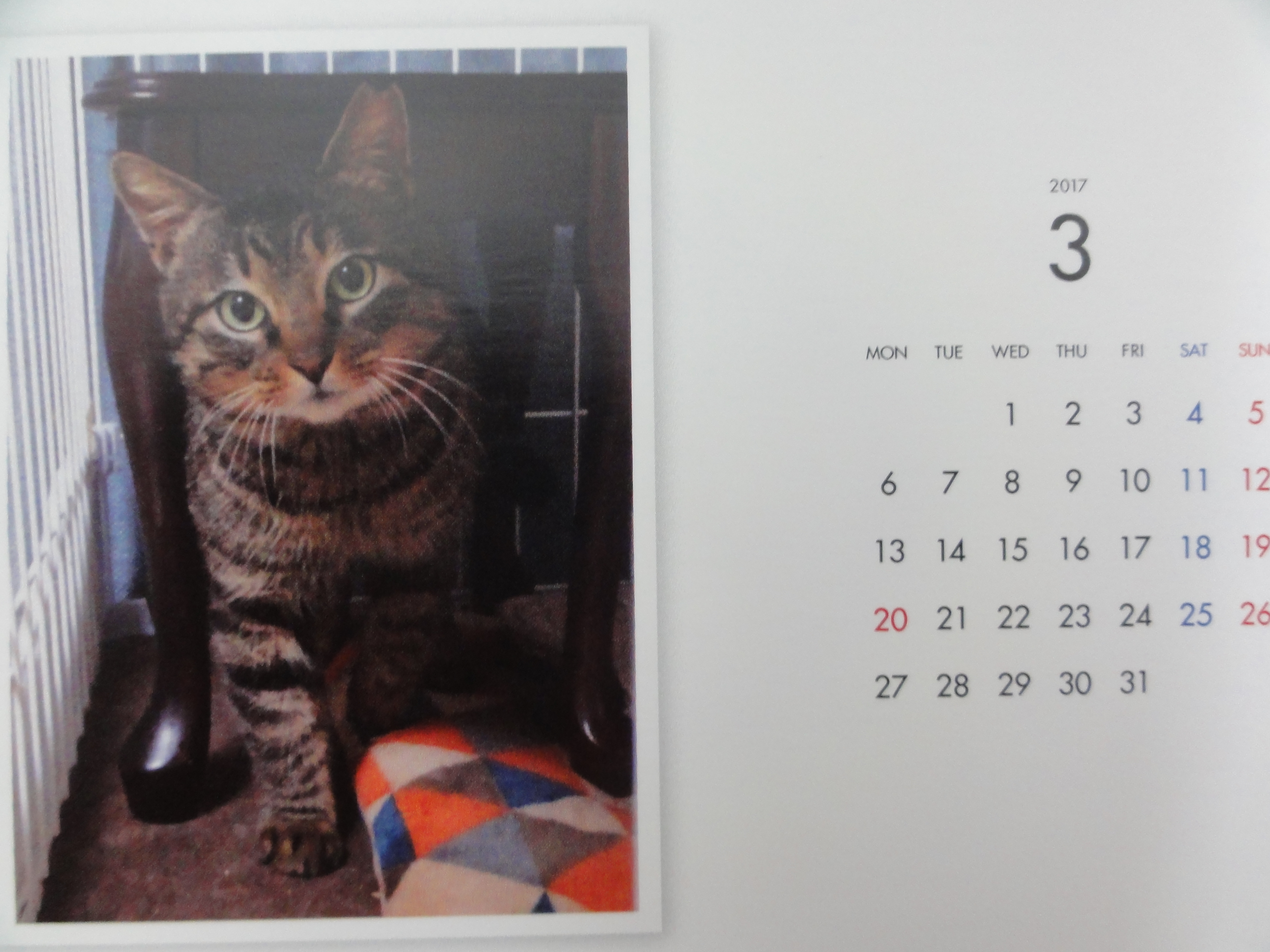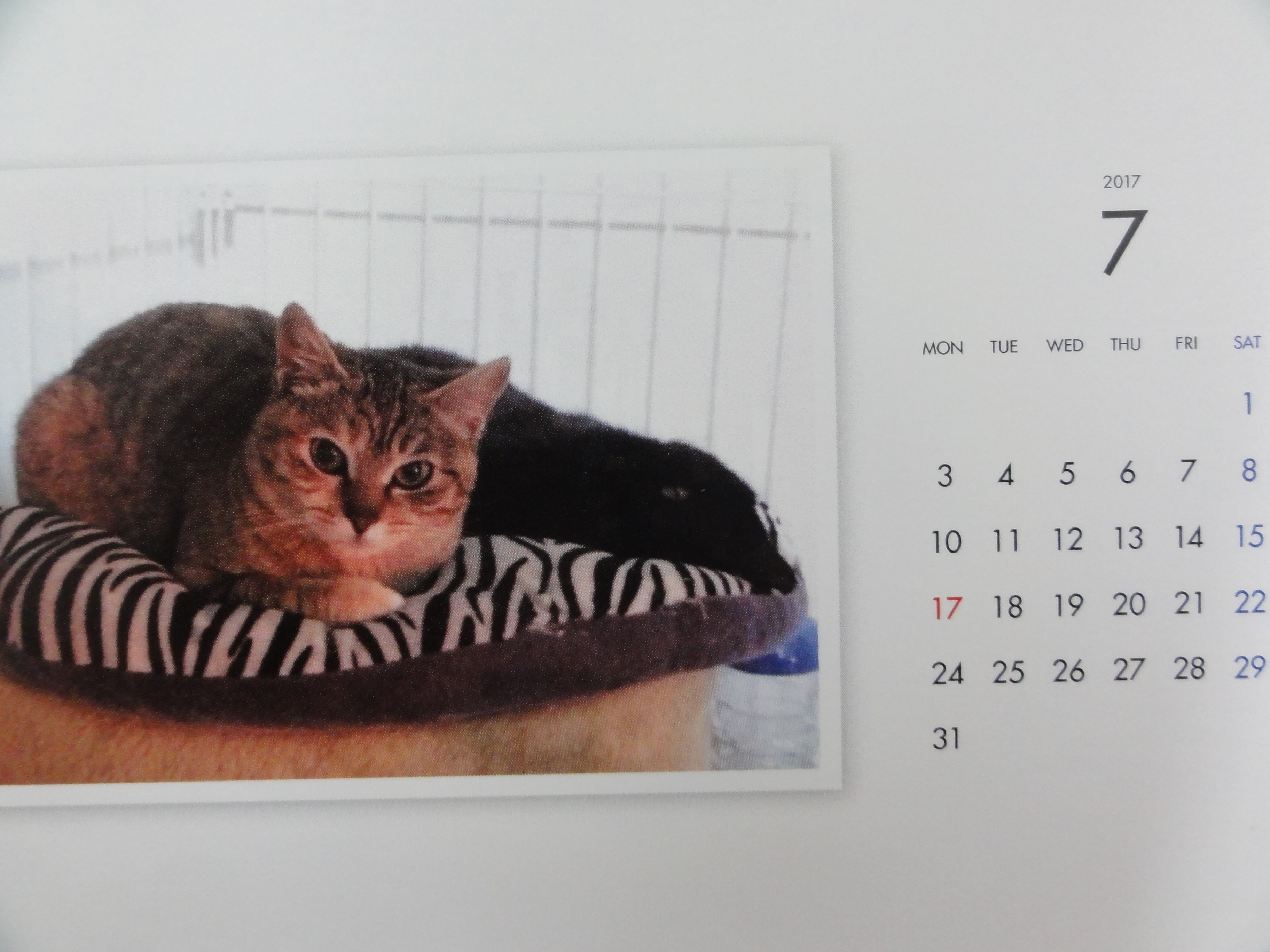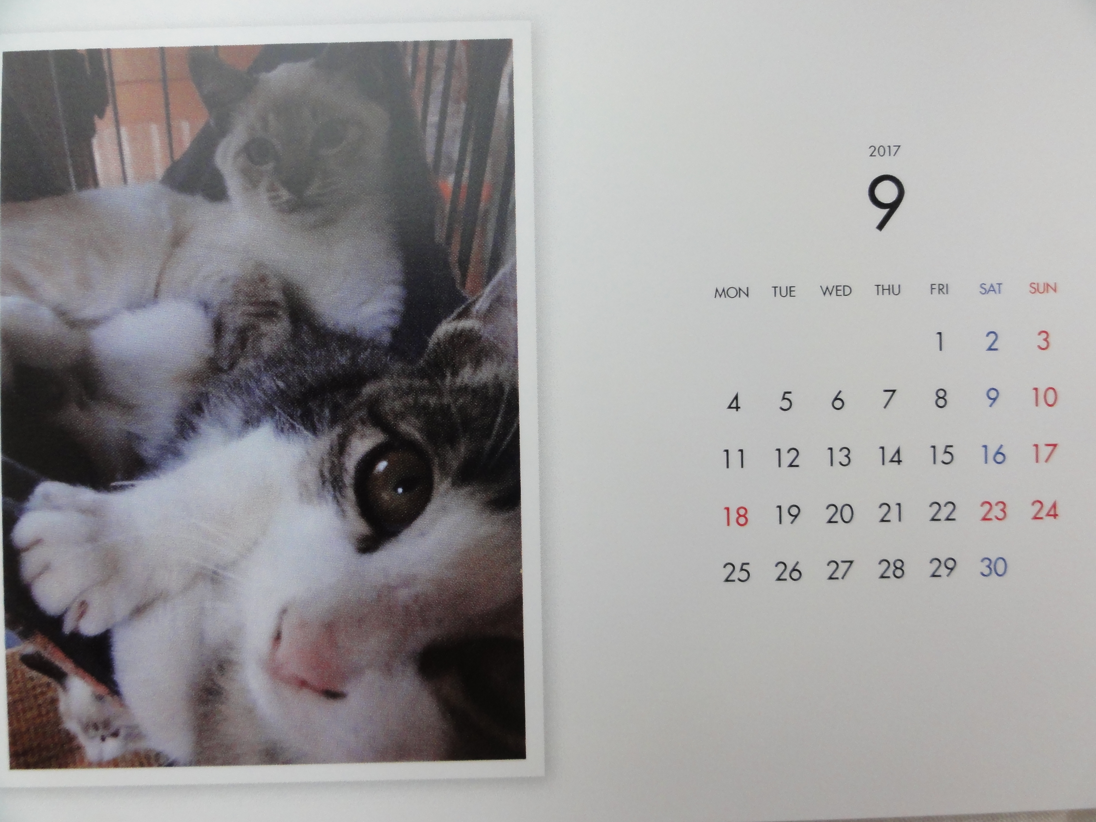昨年からはじめた年末恒例のカレンダーの販売ですが、里子に行った子、里親様を募集中の子を毎月一枚掲載した卓上のコンパクトなカレンダーです。