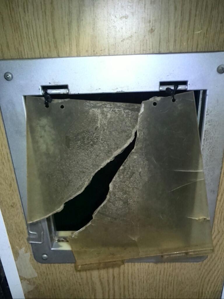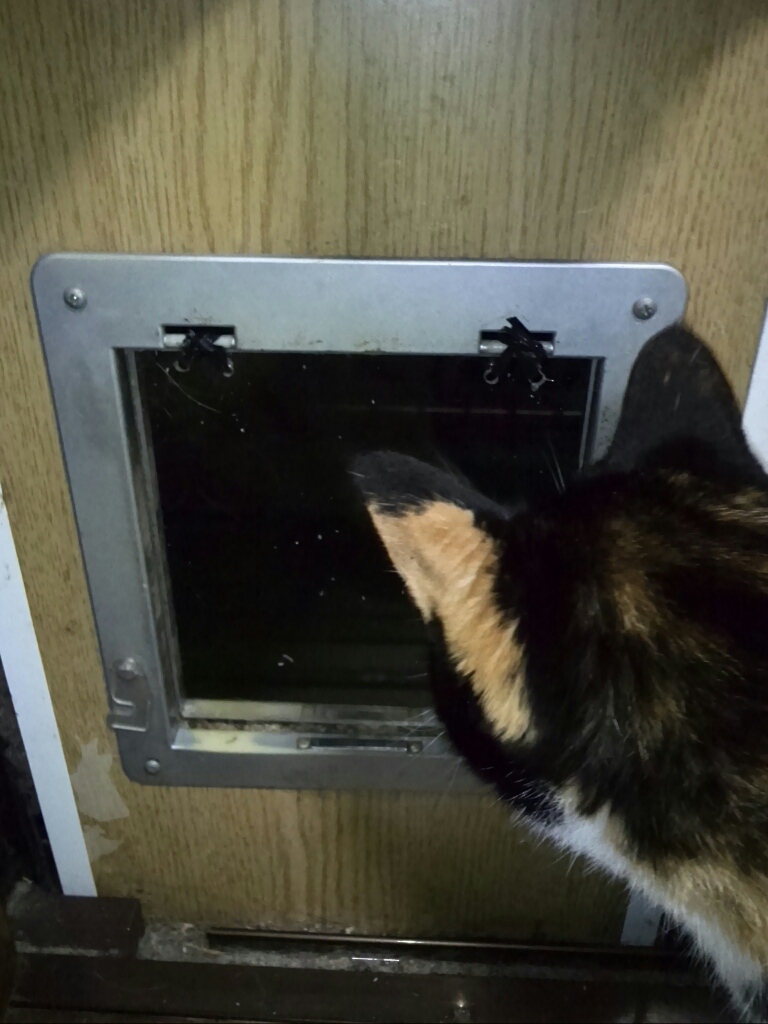壊れました、ベランダに出入りする猫でもドア。