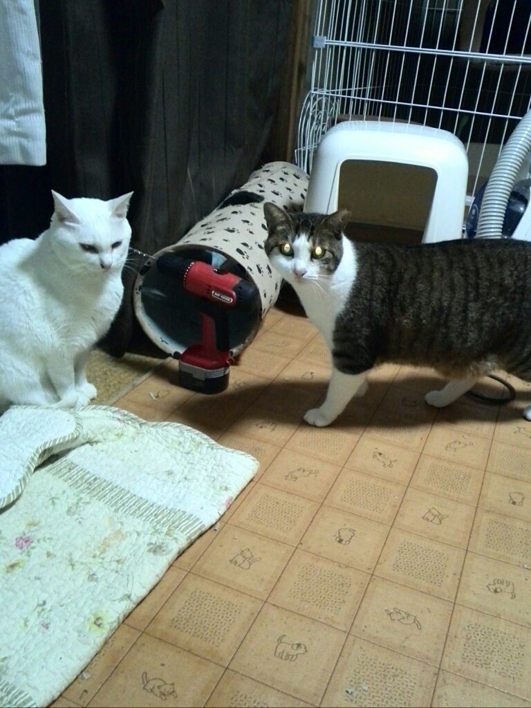 ましてやにゃおにゃおと、なでろ!ださわれ!だ、ご飯くれ!だとうるさい子達をかわしながらの作業!!