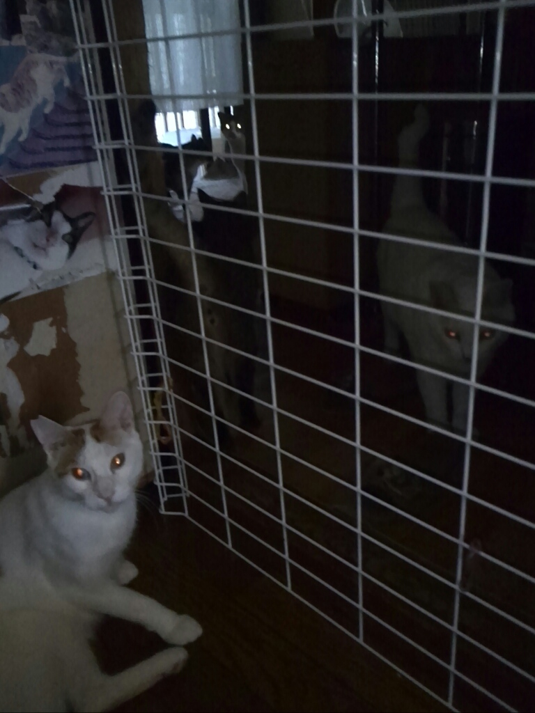 りら、雪、スノー、こなつ、けいた、たろの6匹は2階の私の寝室がテリトリー。