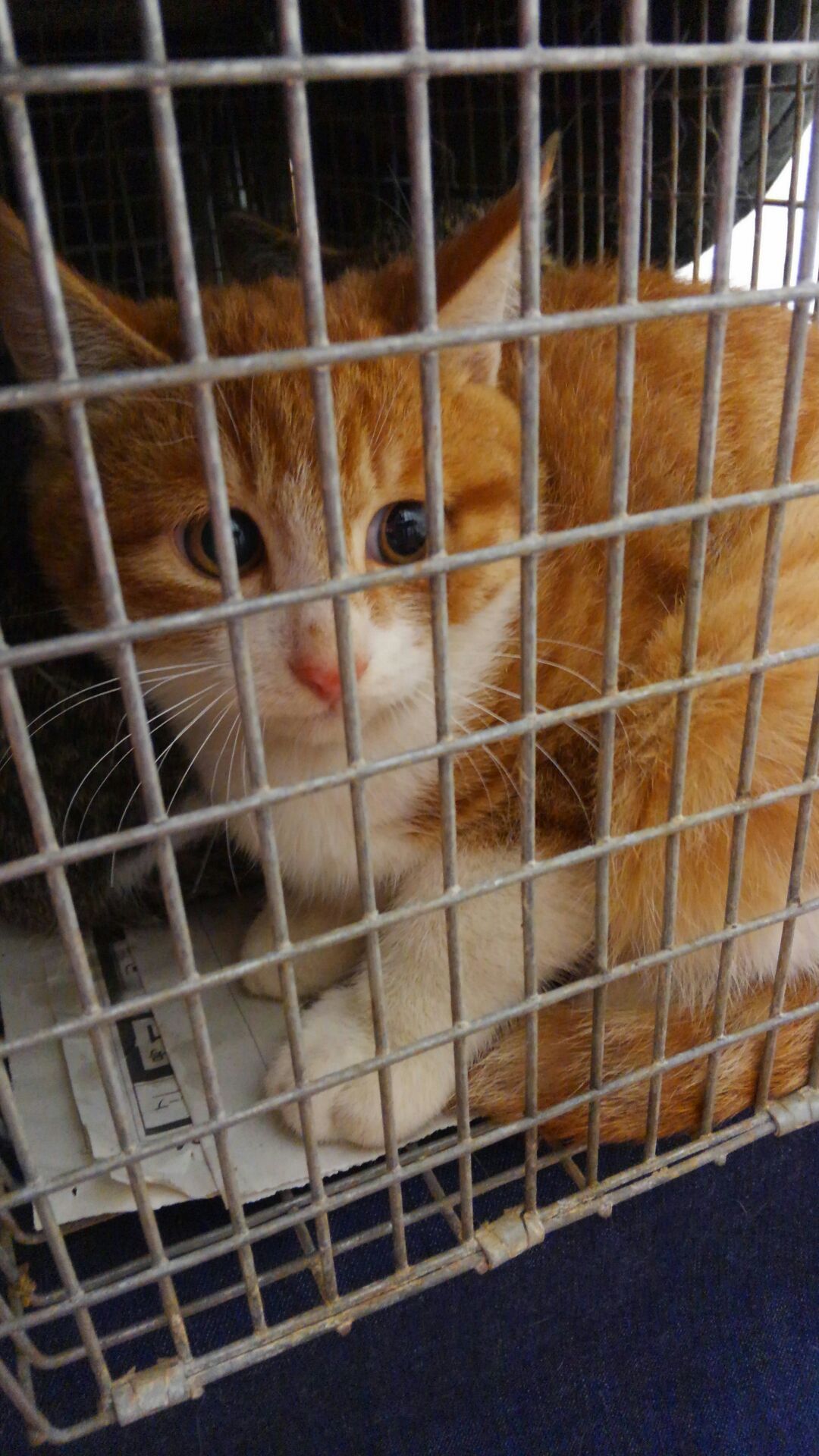 ママ猫捕獲の1か月前にも捕獲器に入ったものの、私が忙しくて行けず仕方なく捕獲器から出してもらった子です。