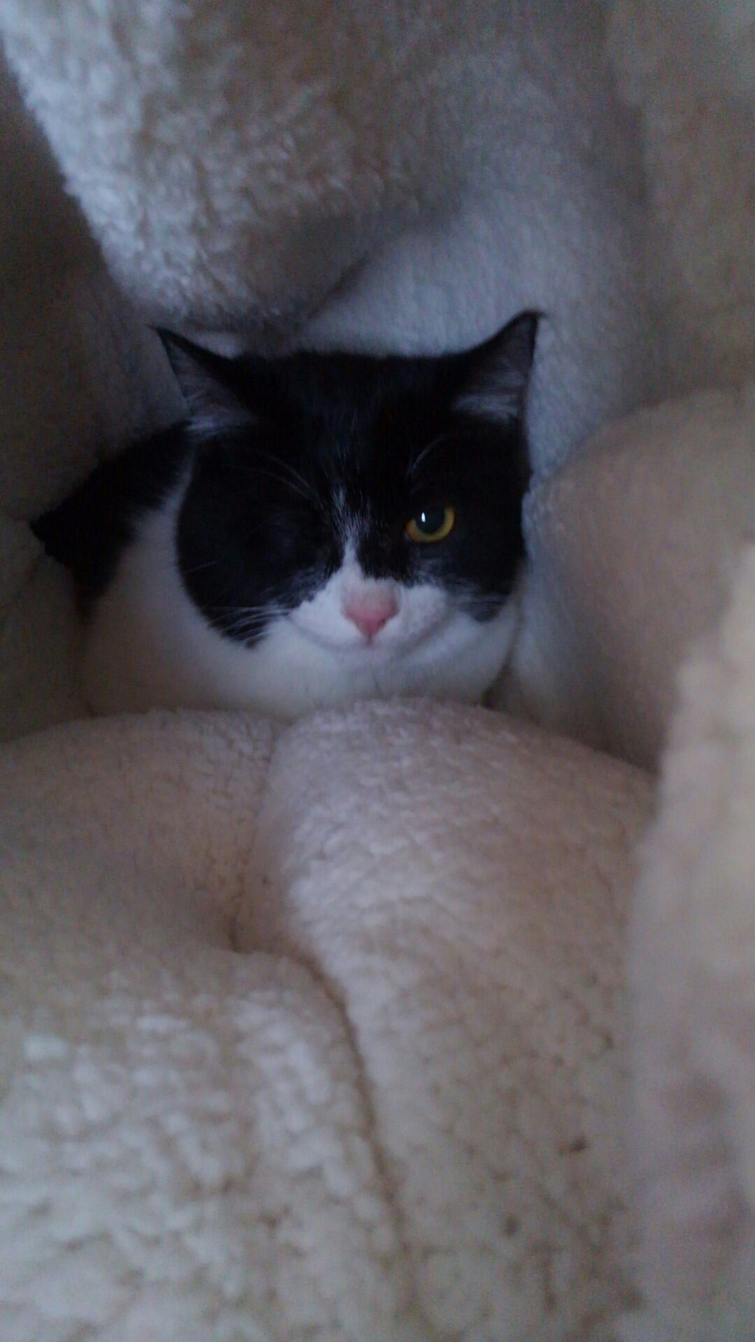 ふわっふわっのマカロン型ベッドに隠れてひとまず落ち着きました。