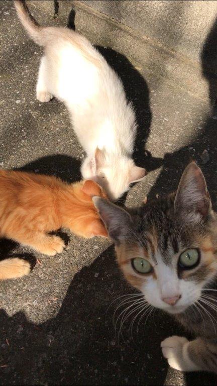 人馴れしているママ猫に若い子。