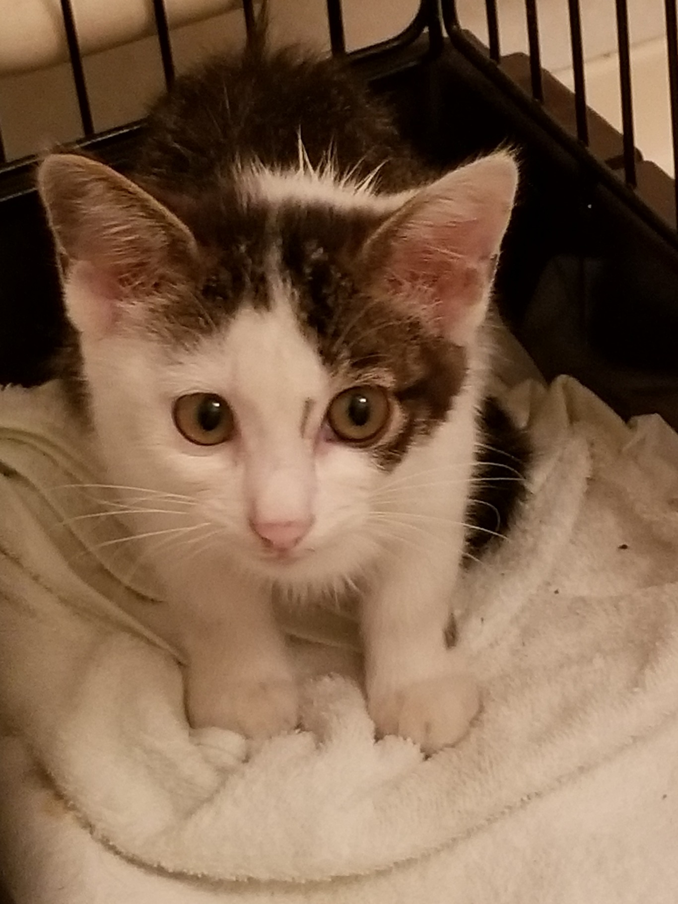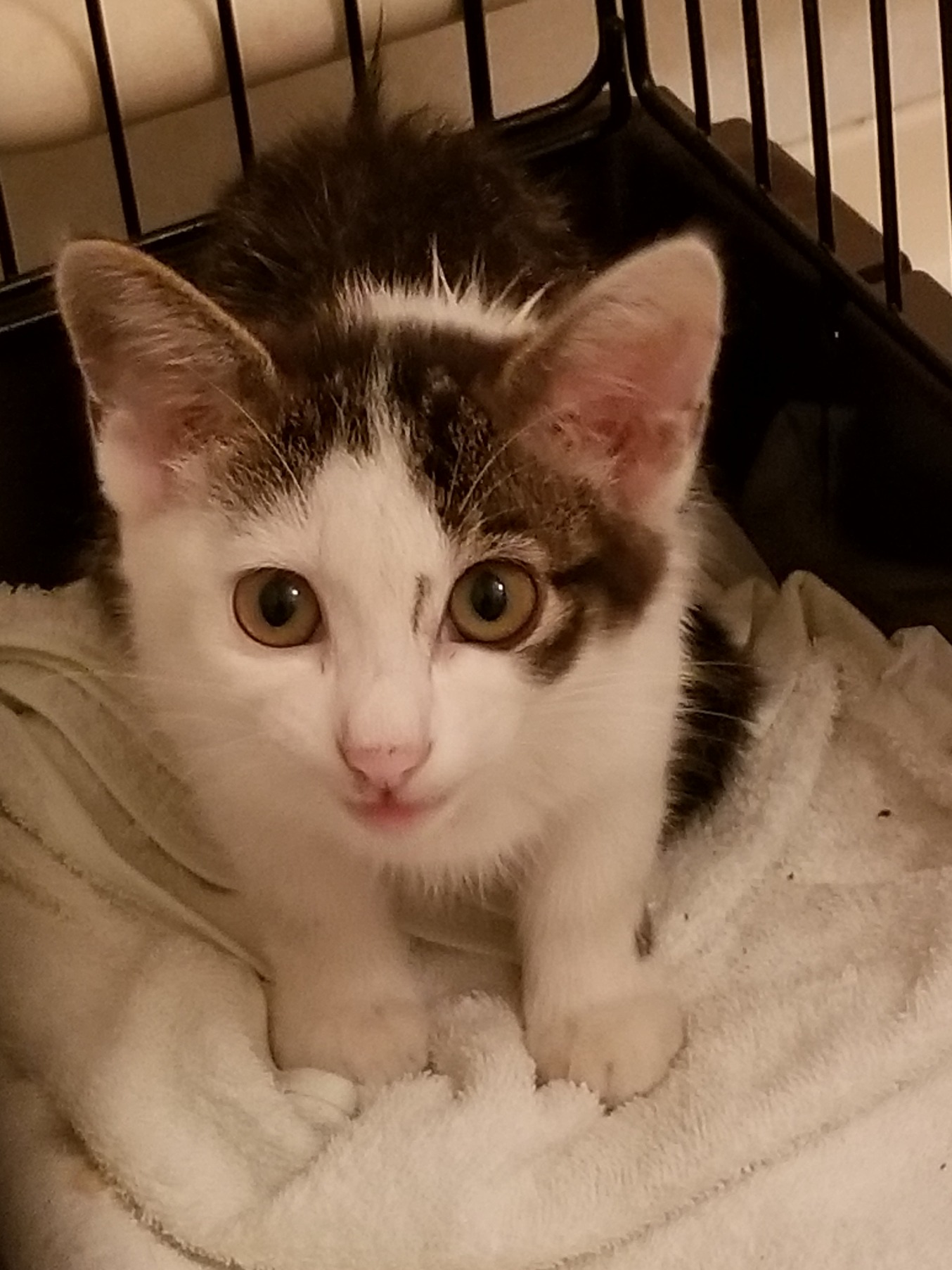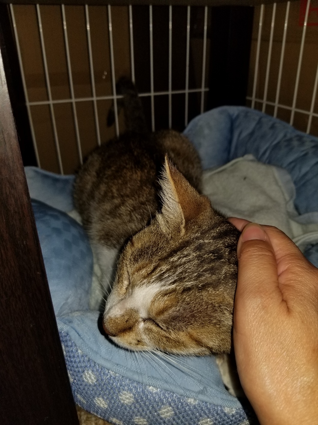 夜に病院に連れて行きましたが、体重1.3kgの女の子で人馴れ抜群のスリスリちゃんでした。