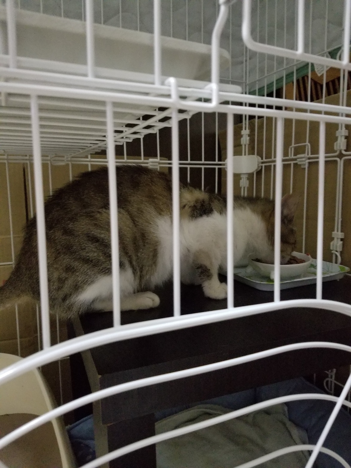 でも体中蚤だらけでブロードラインを垂らしましたが、浴室にゲージを組んで隔離しています。