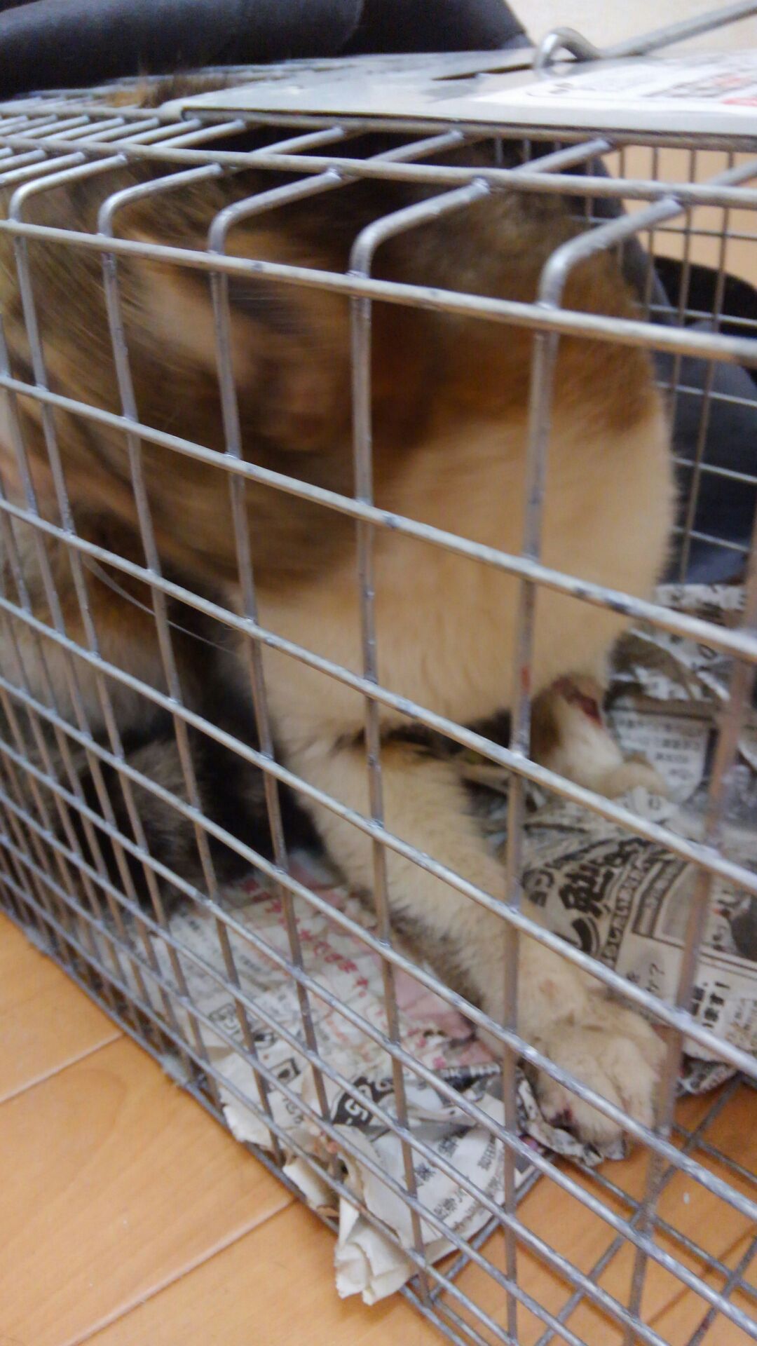 お腹を空かせていたのかほどなく捕獲器に入りかかり付けの病院に直行しました。