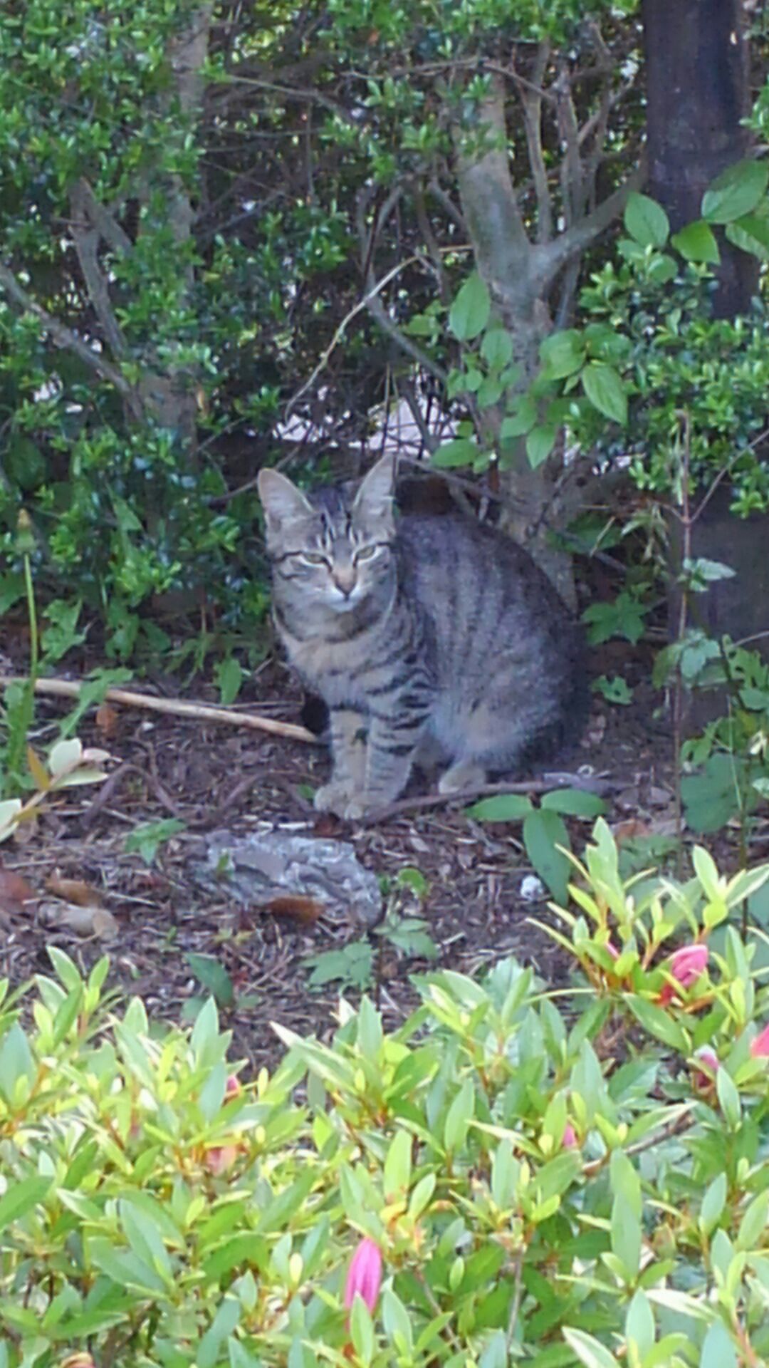 この親子が居なくなってママ猫のママが子猫3匹を連れて庭に来て過ごしていたそうです。