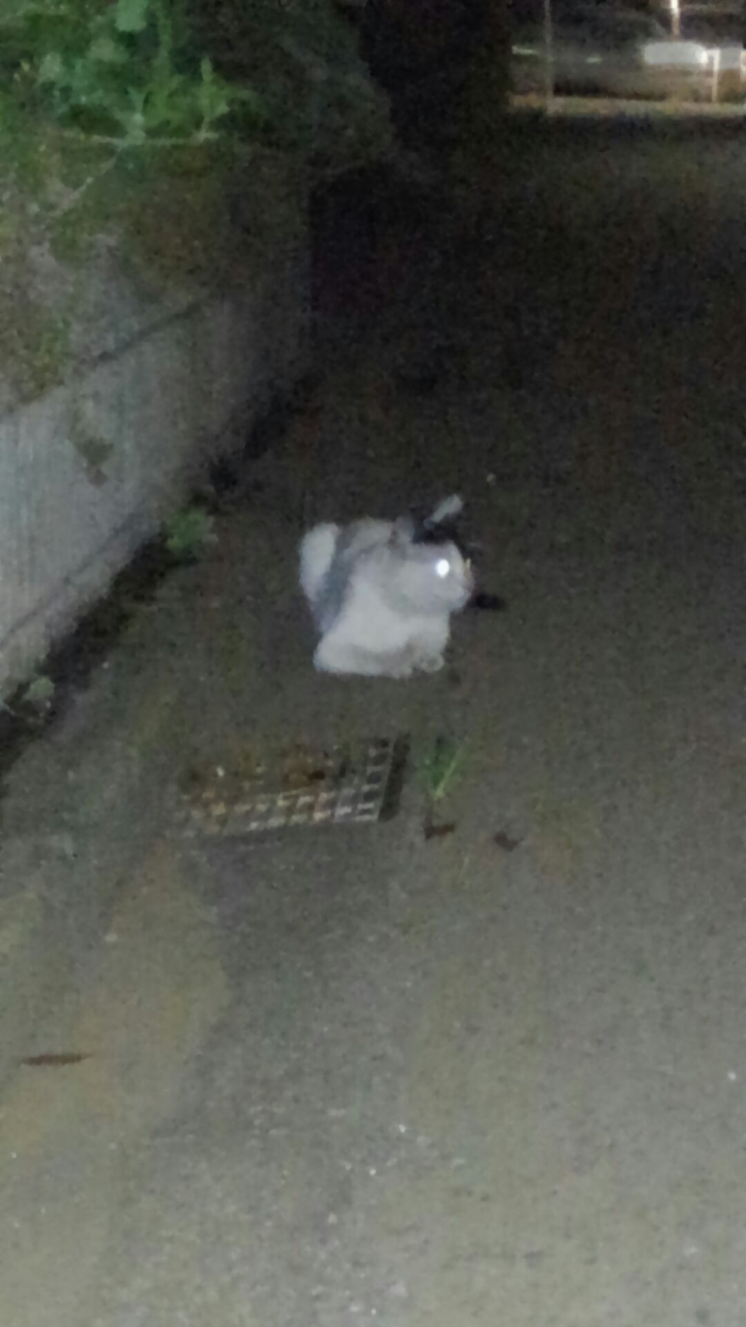 大きな通りから外れた、こんな道は危ないよ・・・と思いながらも進んだ道を白いものが横切りました。