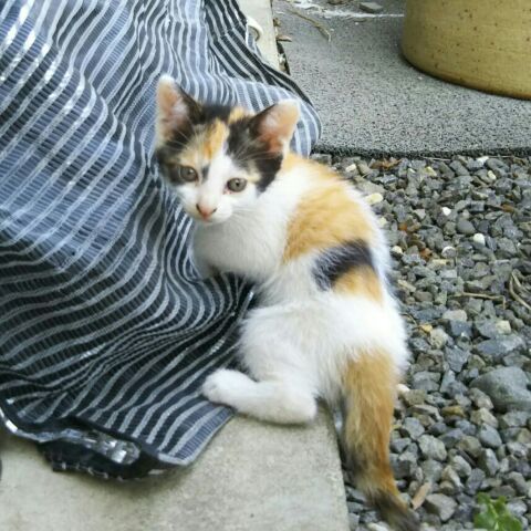 子猫はガリガリです。生後5,6か月くらいでしょうか。