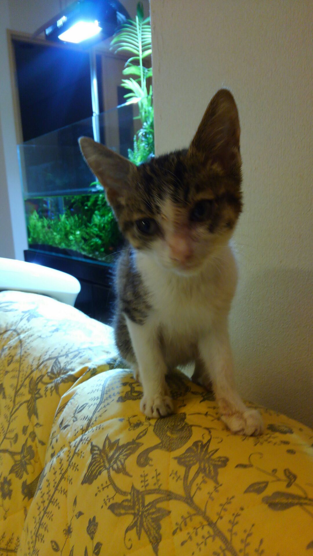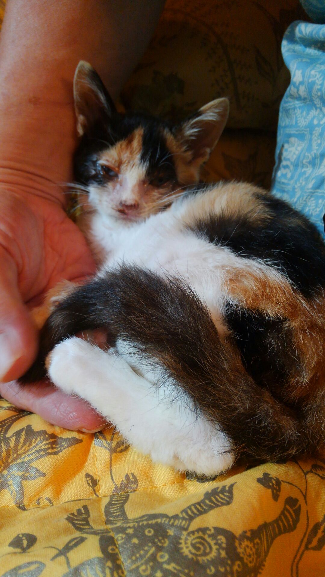 先月に通りかかったところで後ろ足をぶら下げたように走る三毛の子猫を見かけ以来探しに行ってもいない・・・とのこと。