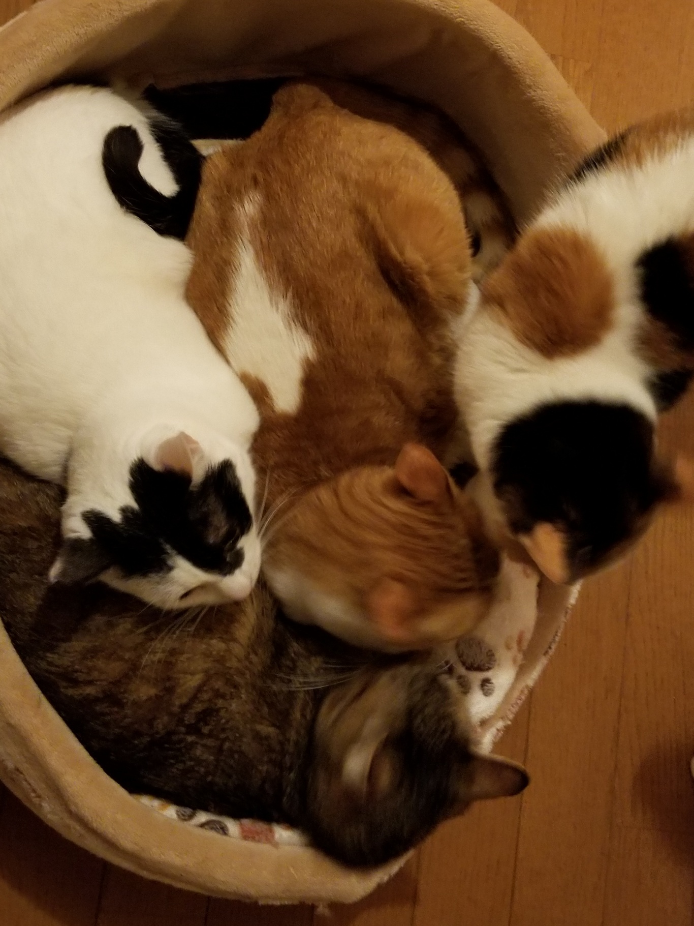 翌年、エサやりさんが相談会に来られて全員不妊去勢手術をして(子猫は生後5か月くらいになっていました)子猫は室内に入れて里親探し。