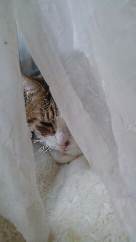 なぜかカーテンの向こうに自主的に隔離。