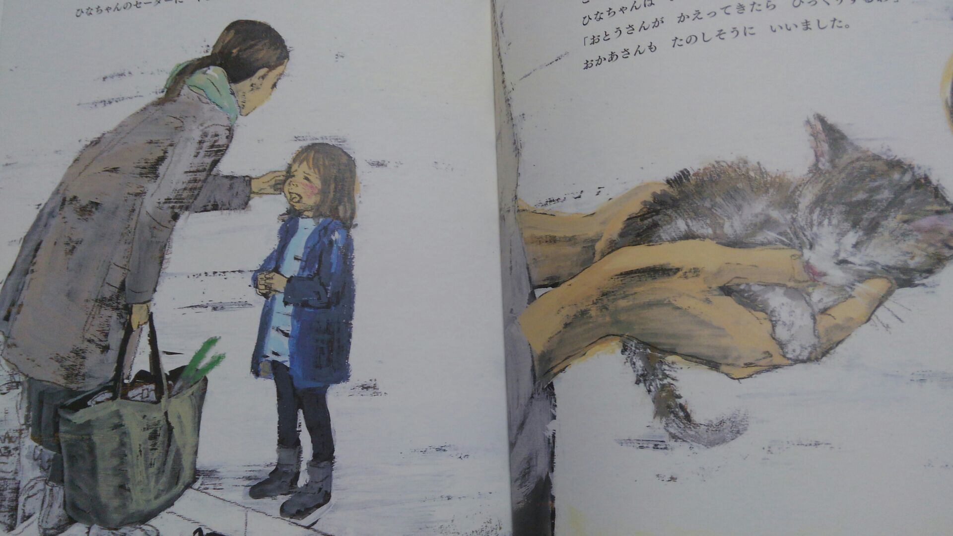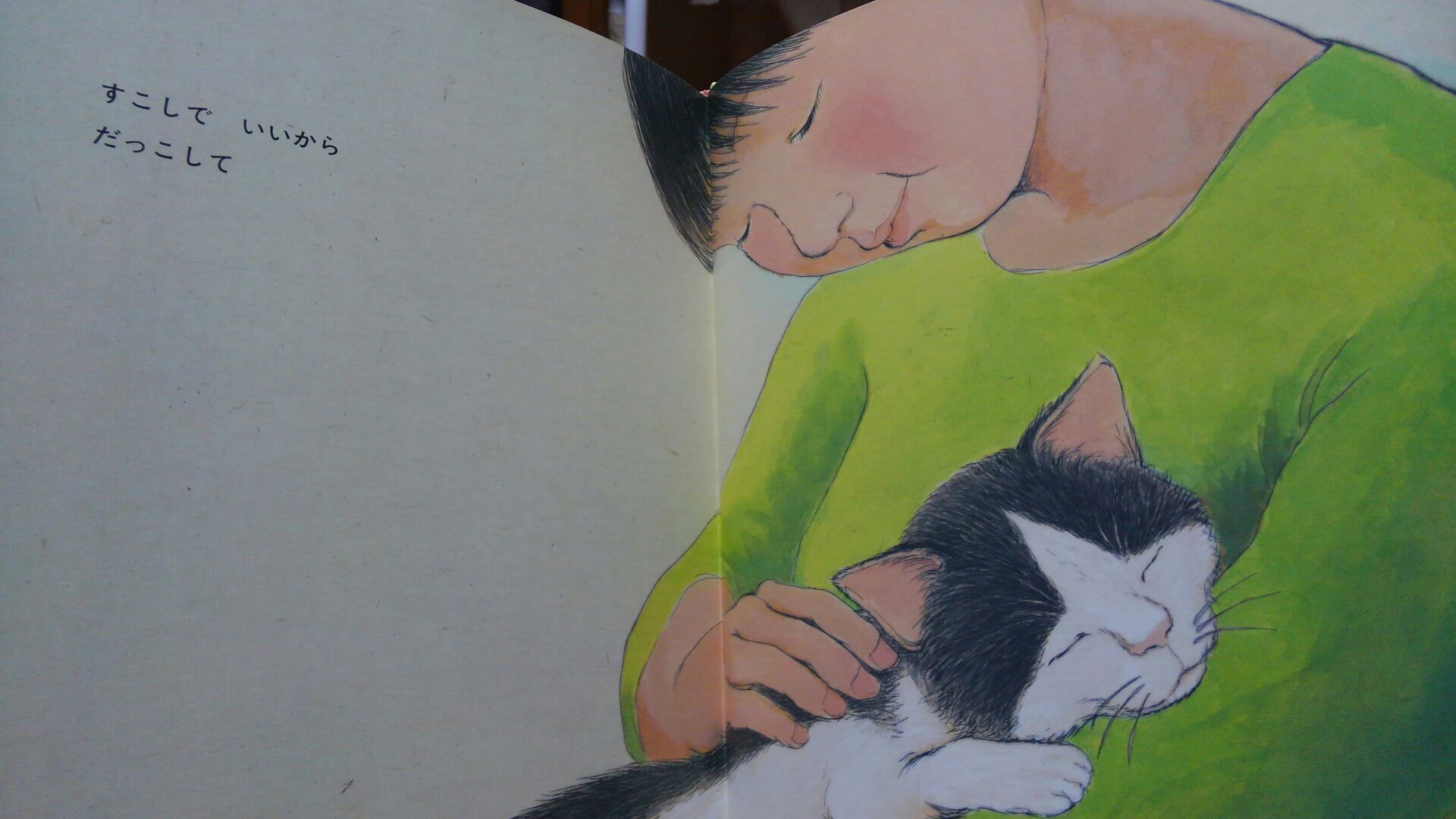 この絵本は飼い猫ちゃんがママに抱っこしてほしいけれど、生まれた赤ちゃん(人間)にお姉ちゃんらしくママを譲ります。