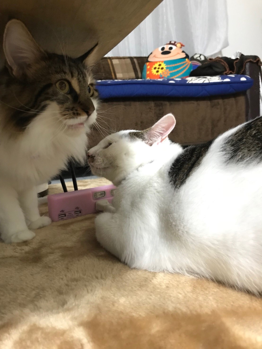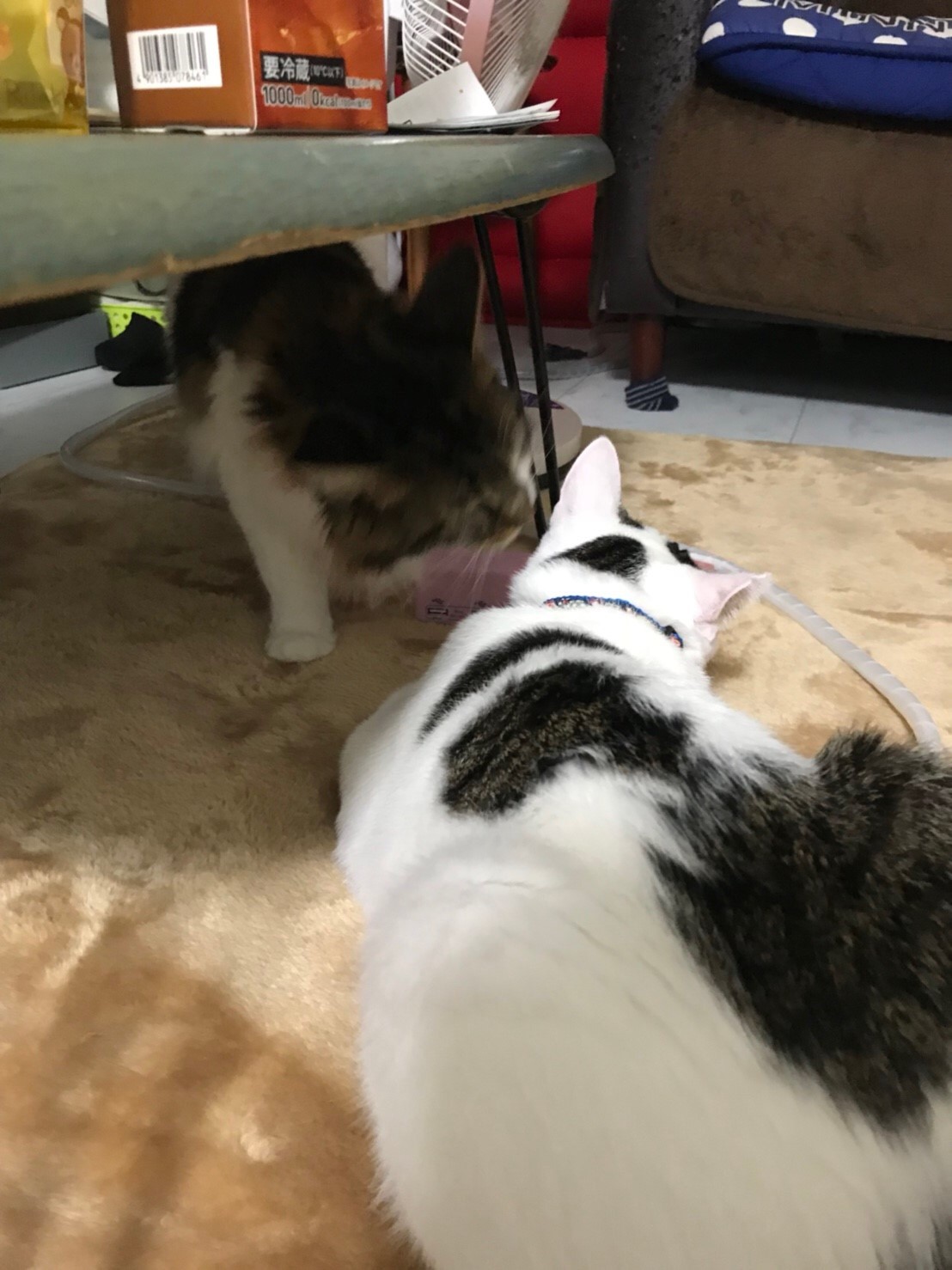 先住猫ちゃんと上手くやっているようで良かった❤君がいなくなって、私もちょいちょいくんも寂しいけど、君が楽しいのが一番だから本当に良かった❗Fさま、ご家族のみなさま、暖かく見守って頂き、ありがとうございます