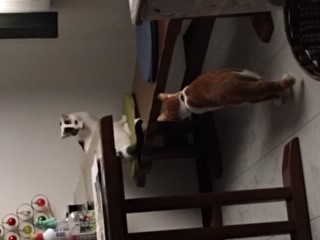 こちらの心配をよそにちょびたくんはその日にゲージから出て、3日目にはシャーシャーするぶんたくんとももやんちゃんと階段を往ったり来たりと遊んでいるそうです。