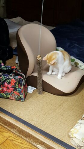 先月保護した3兄弟のうち、ひとりで新しい家族のもとに巣立った琥珀くんは