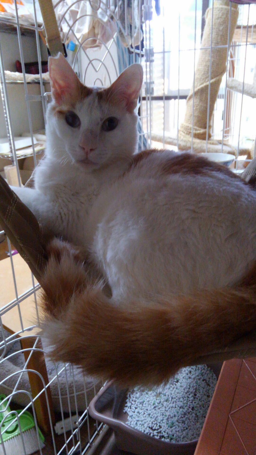 その子をアライグマの捕獲器ごと病院に運び去勢手術をして我が家のゲージで2ヶ月家猫訓練。