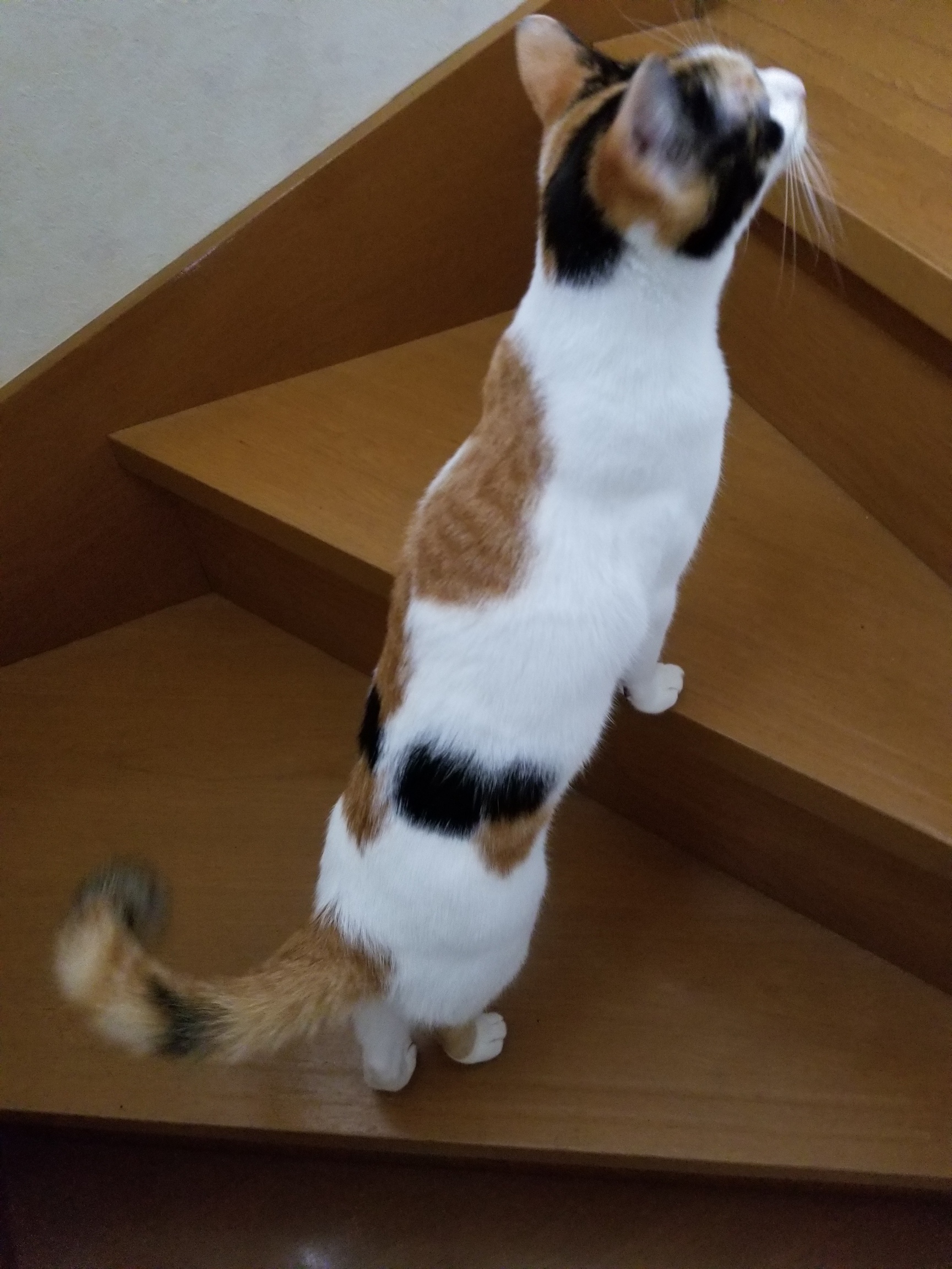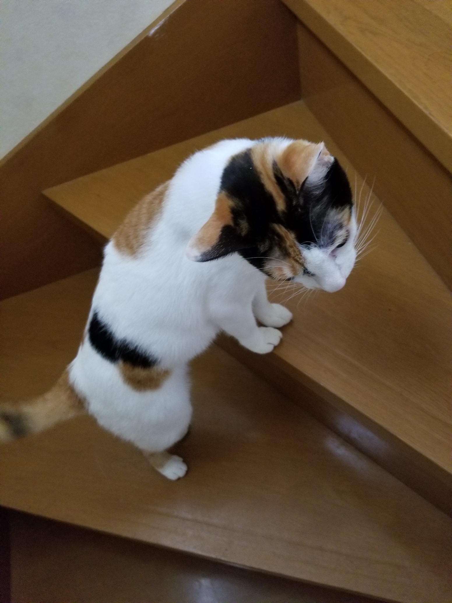 律義に私を追いかけ追い越し階段でどた~んと転がり撫でられたいさつき。