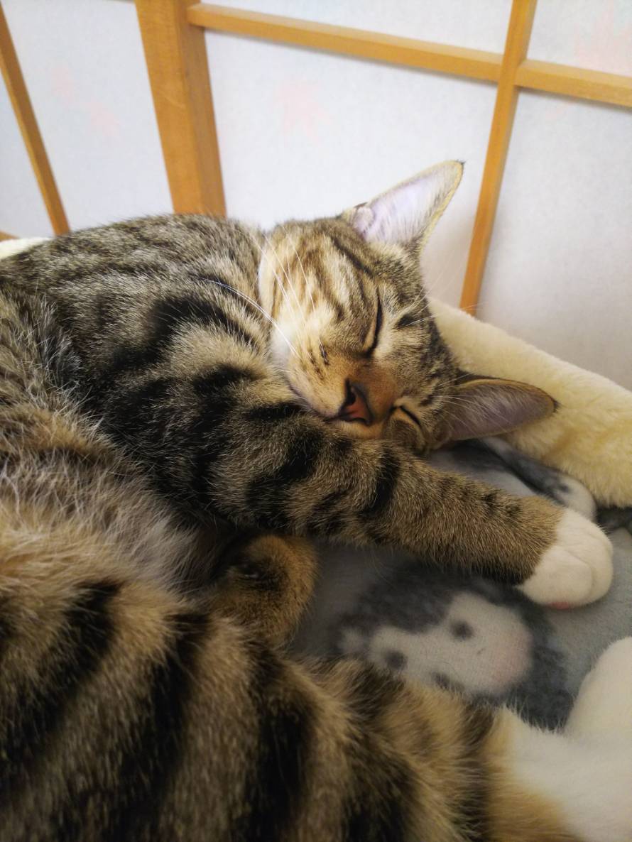 こんな格好で眠るやくみちゃん、幸せで本当にうれしいです。