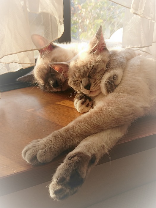 マシェリちゃん、ショパン君、ルキアちゃん、お団子で眠るようになったそうです。
