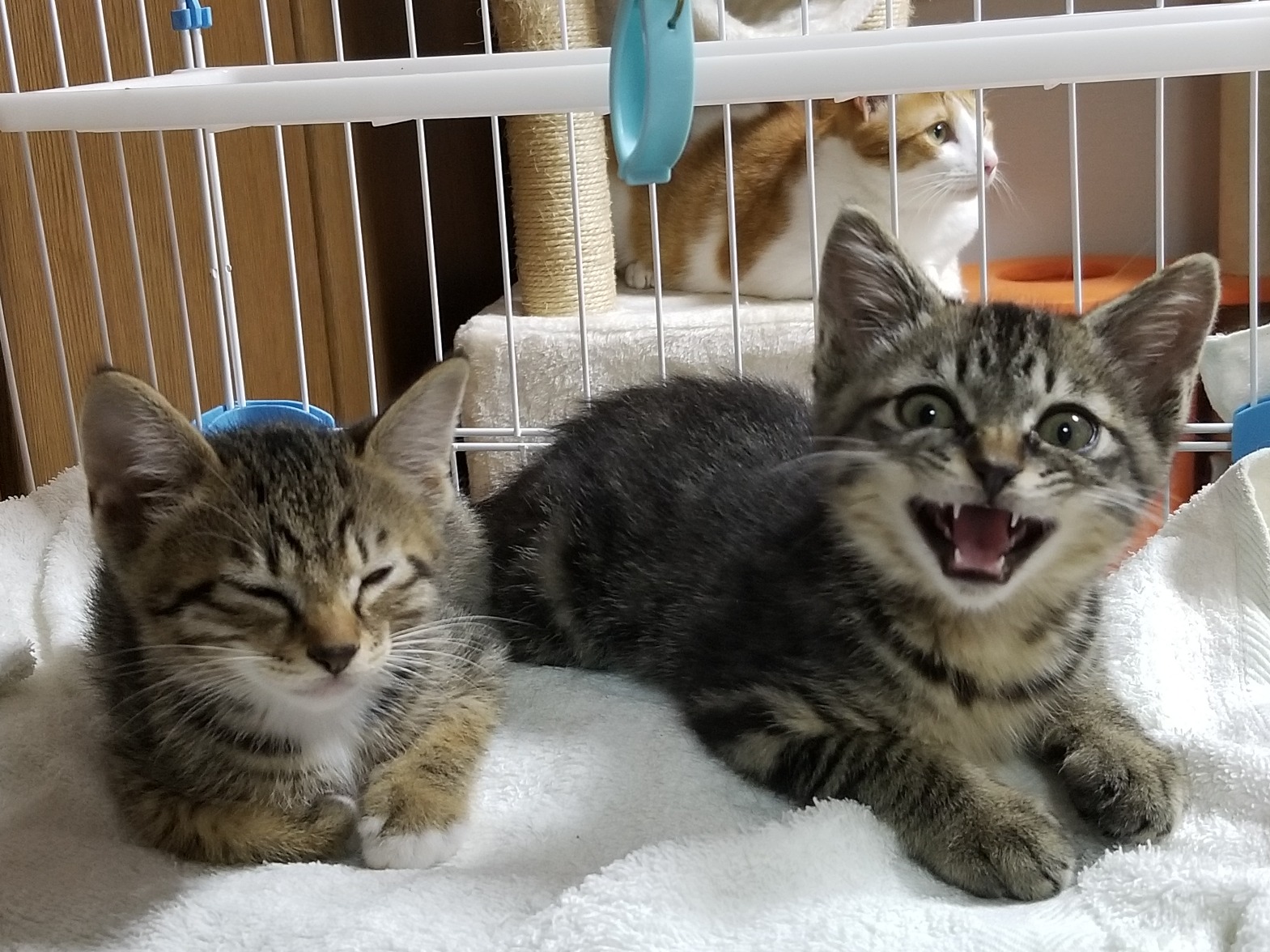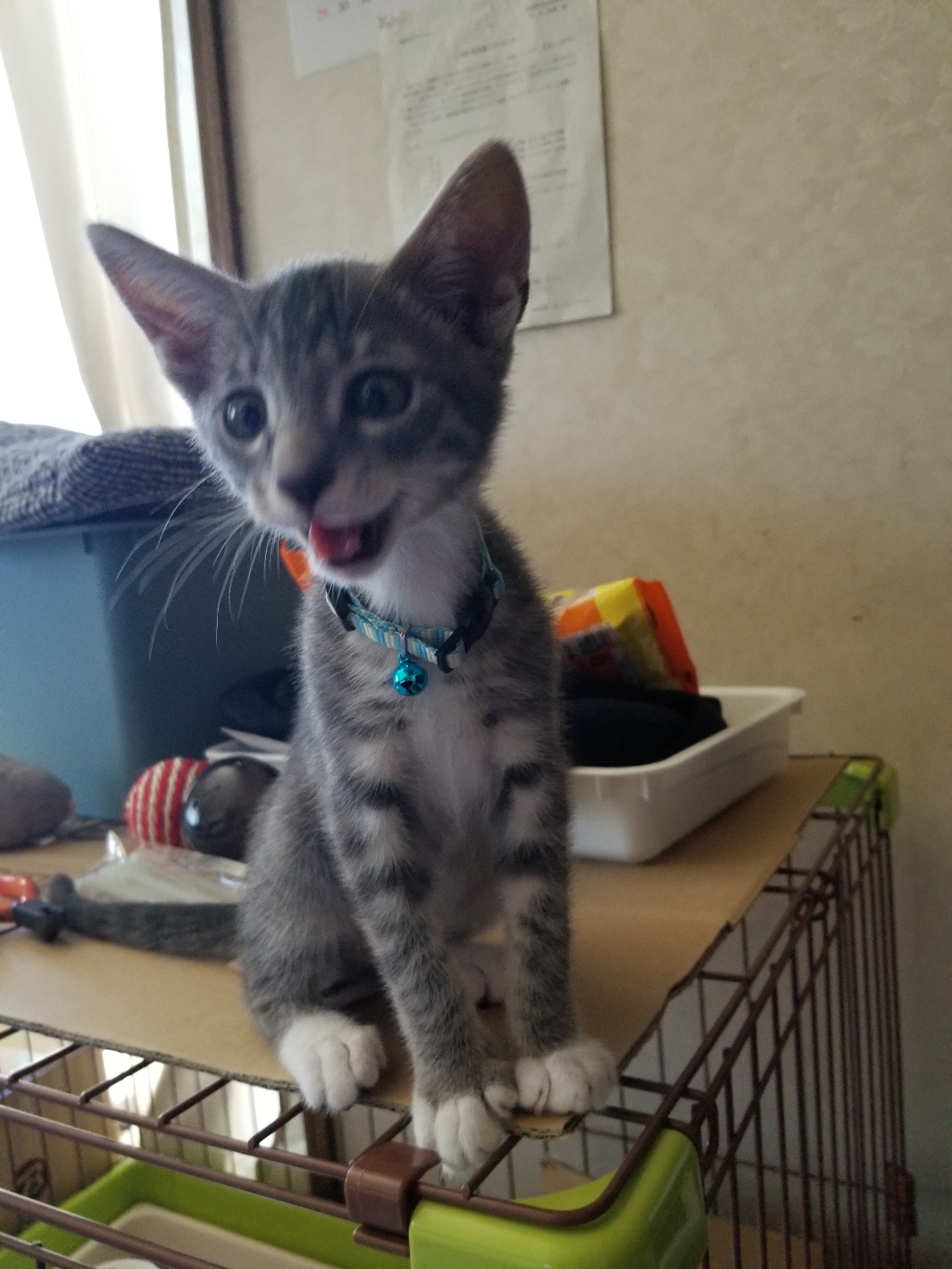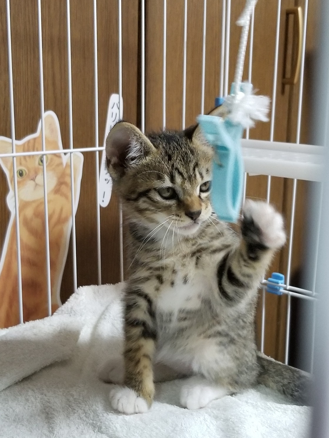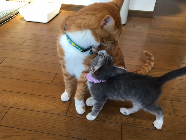 朝一でエサやりさんから3匹の子猫を預かり、1匹はももとのゲージに入れて2匹は先週の保健所との協働事業の譲渡会で決まった里親様にお届けしました。