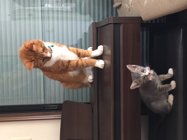 ラテくん、モカくん兄弟一緒でしかも先住のアメショーのお兄さんお姉さんがいるご家庭です。