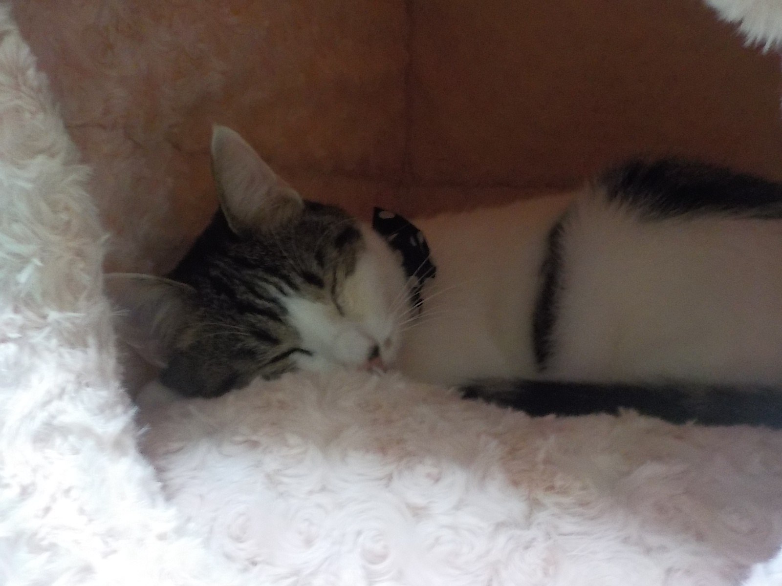 幸せに眠るお顔が平和そのもので、癒されますね。
