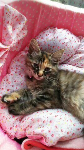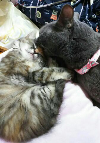 一昨日ご紹介した三毛ちゃんとはちわれちゃんの姉妹の茶々ちゃんの里親様からもお写真をいただきました。
