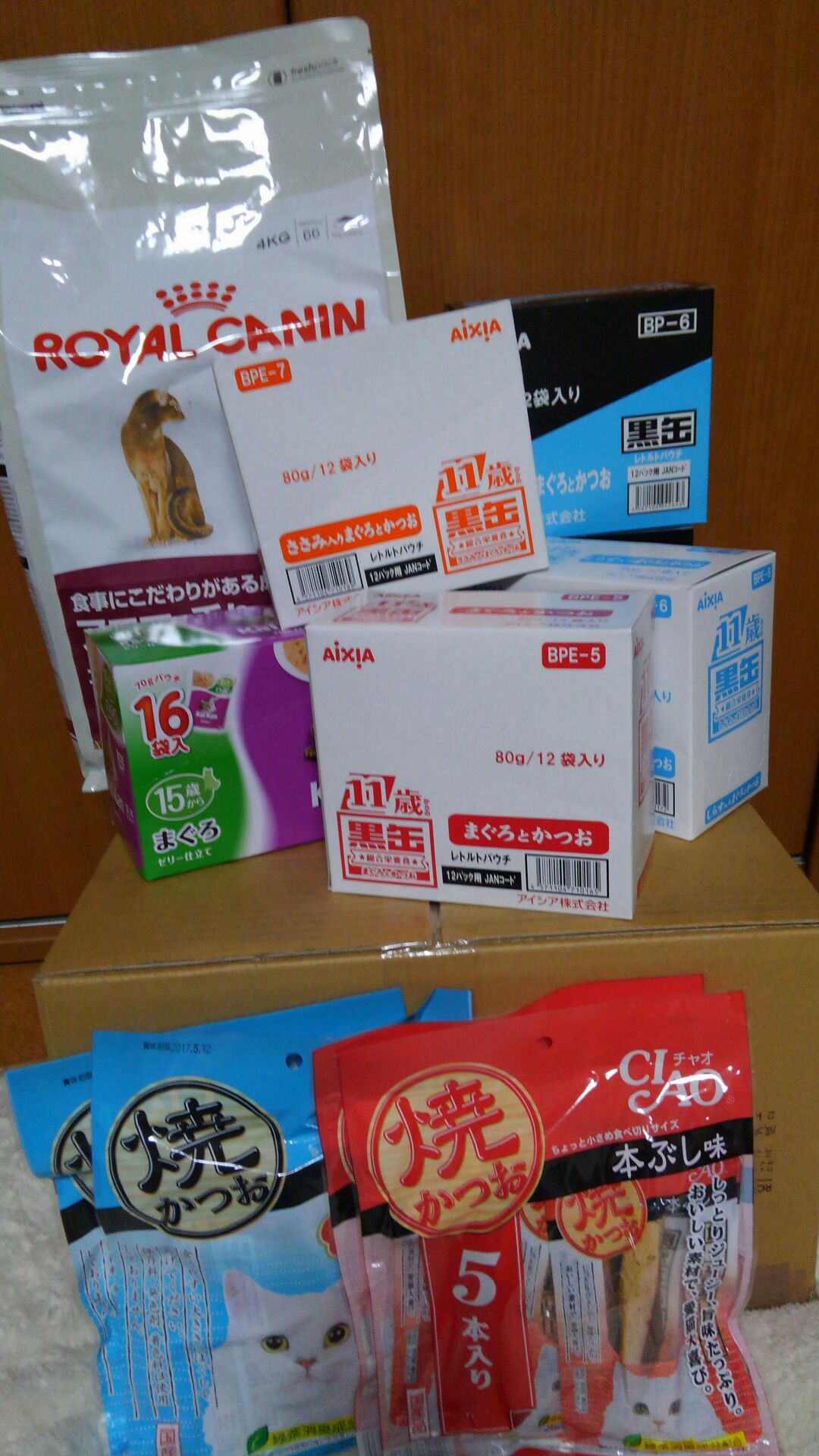またまたアーサー君のママからたくさんの猫ごはんやおやつを送っていただきました。