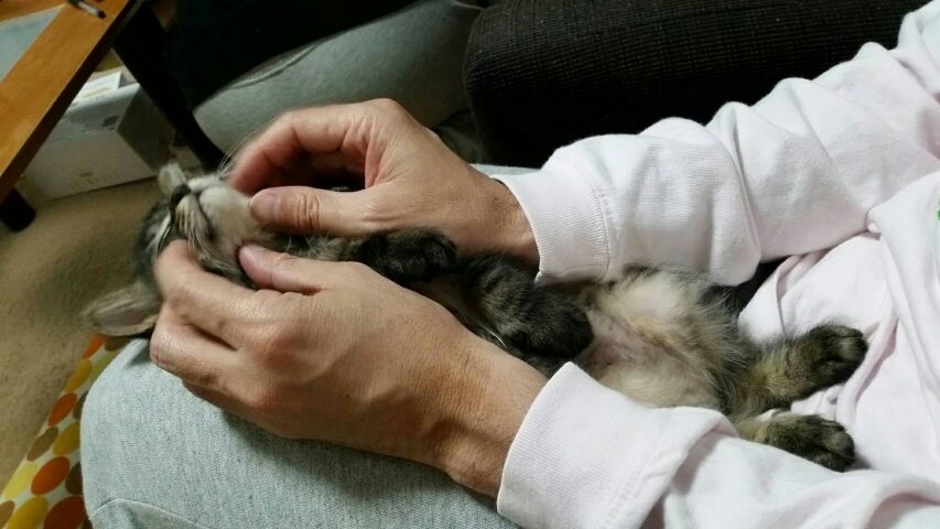 息子さんのお膝の上でねんねしたり、からだをなでなでさせてくれるようになったそうです。