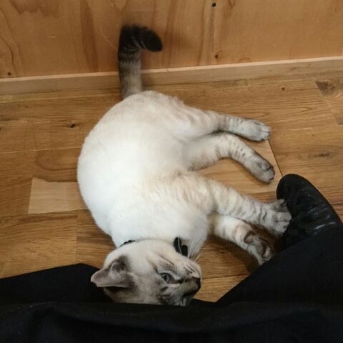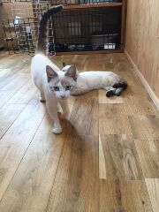 6匹の子猫たちのうちシャムミックス風の2匹はゲージを卒業して無垢の床を気持ちよさそうに歩いています。