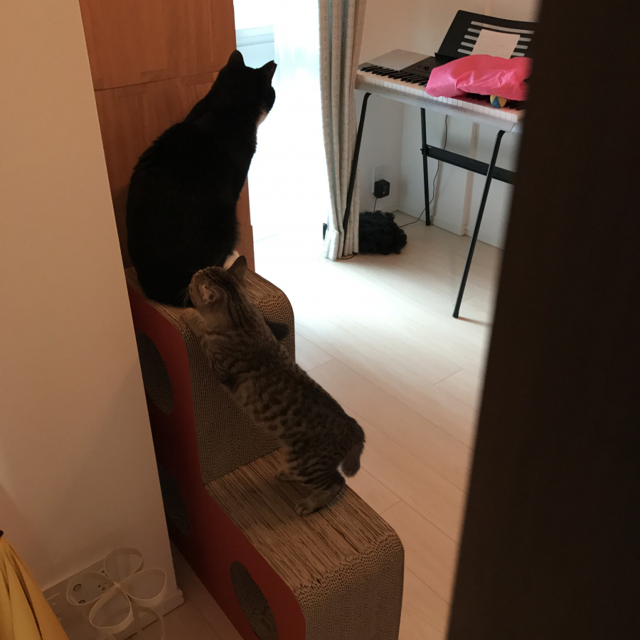 はむちゃん(るみちゃん)もまた先住猫さんにべったり!