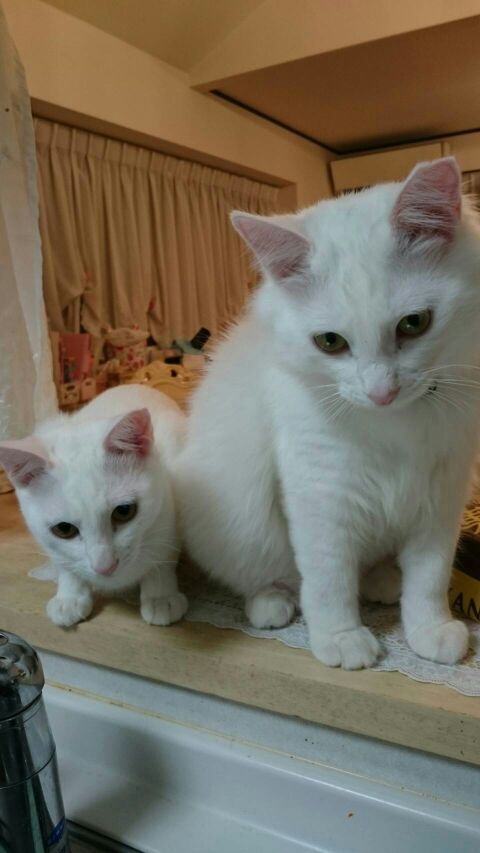 みんにゃの家のホームページを作ってくださっている、なみさんのおうちに昨年巣立ったこの子たち、真っ白兄妹のパール君とシェルちゃん。