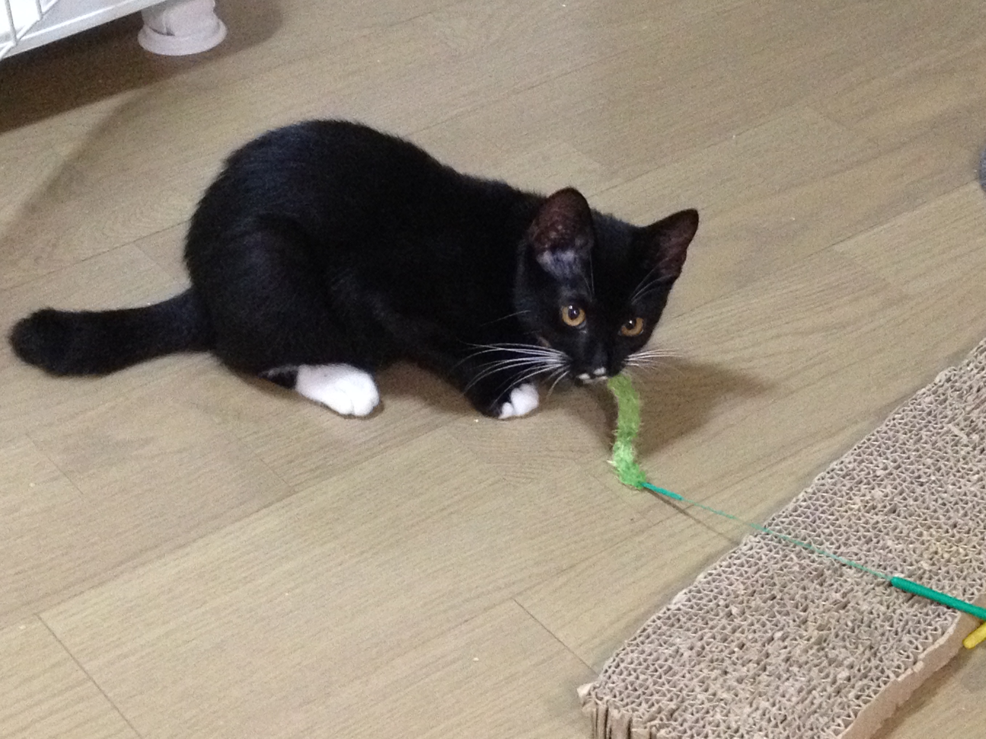 わんぱく度ナンバーワンの誉れ高いカイト君は大きなキャットタワーを買ってもらってご満悦?