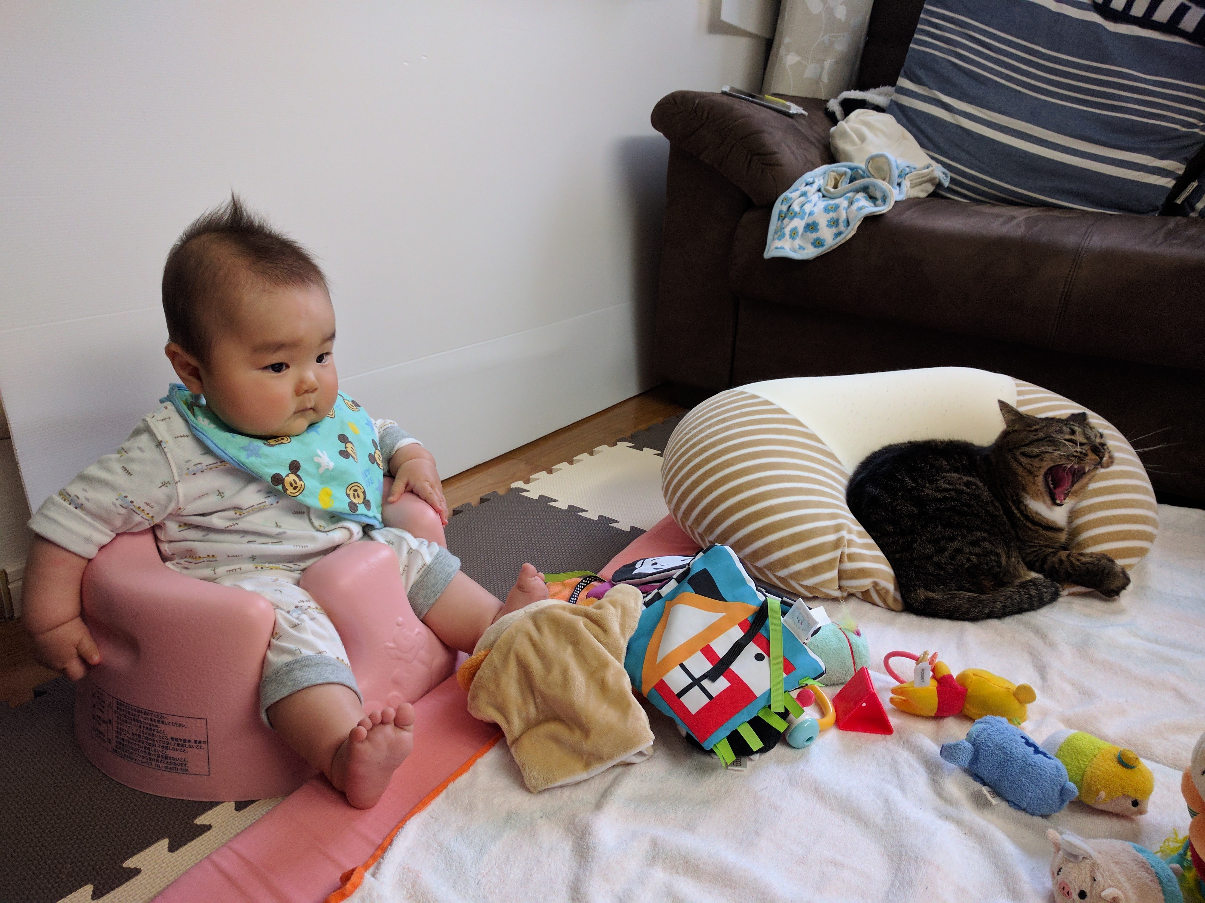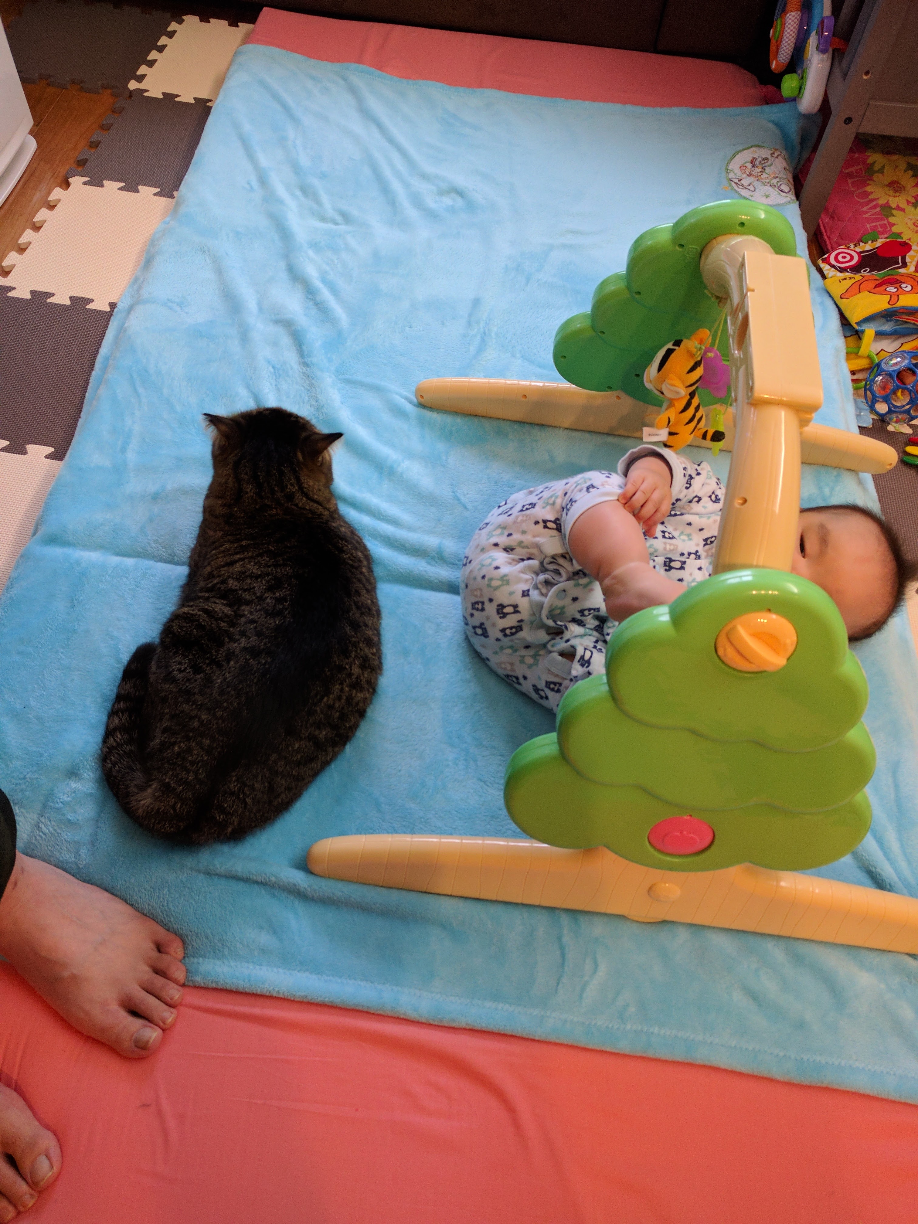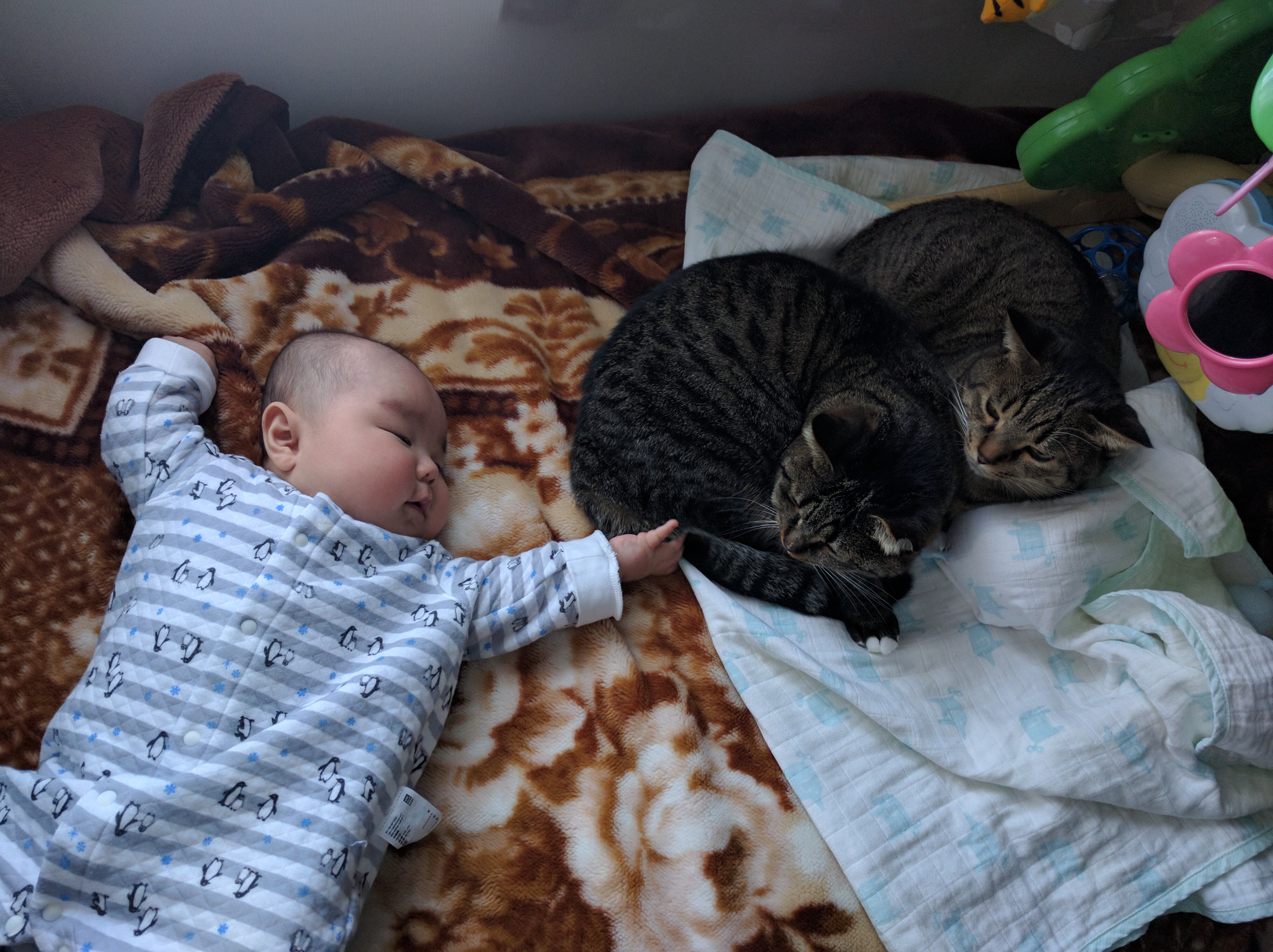 猫たちにとってもこの赤ちゃんがいることが当たり前で、一応気を遣っている? いない?(笑)