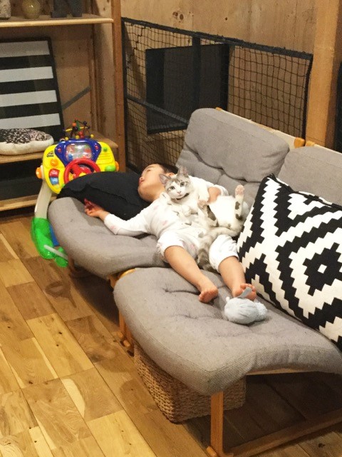 スーちゃん、レオ君は遊び疲れて爆睡中です!