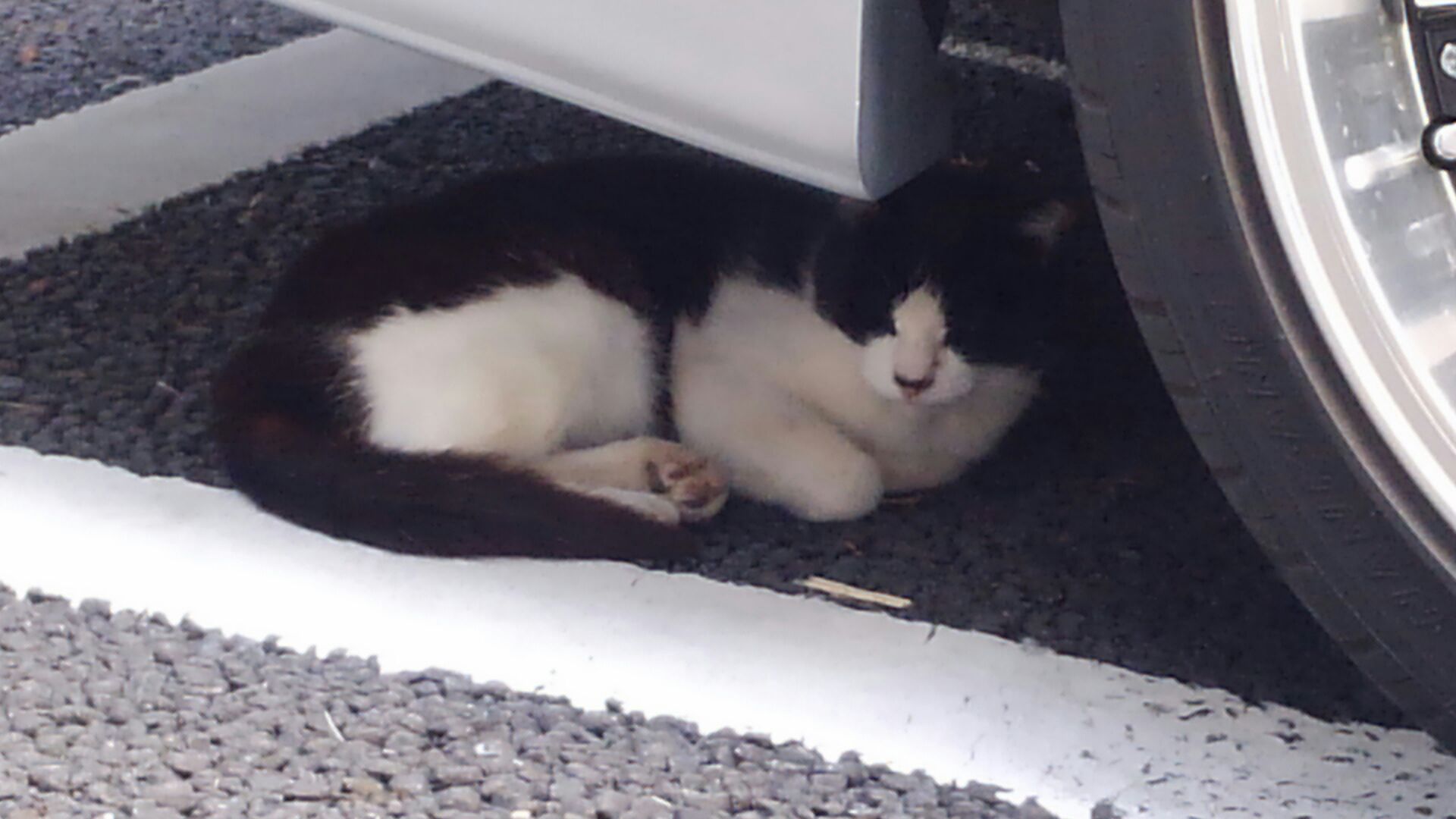 歩きながらきょろきょろしているとアパートの駐車場の奥で大胆に寝ている子発見。